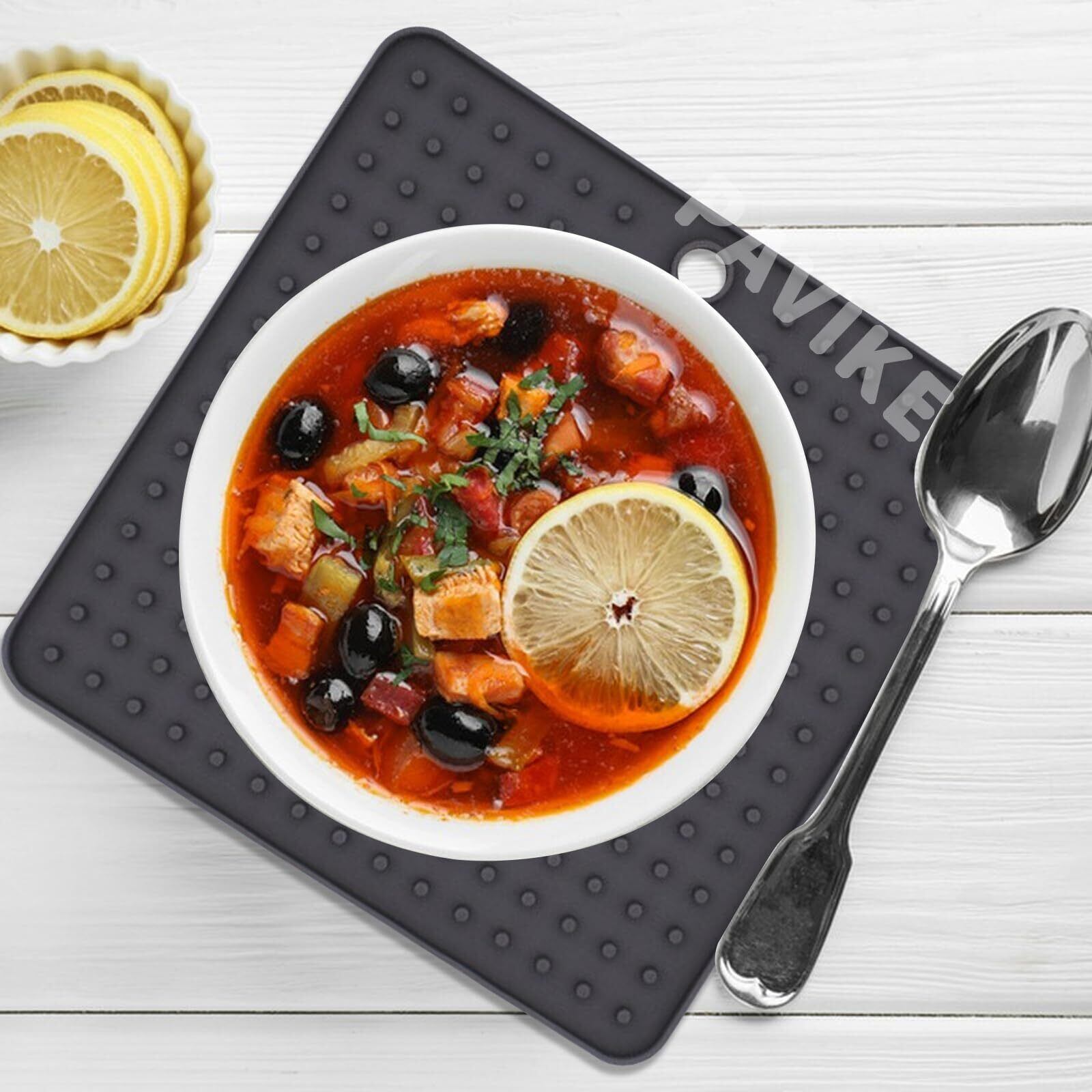 PAVIKE シリコン水切りマット(2個入り)グレー 正方形18*18cm 断熱滑り止 皿置き お手入れ簡単 吊ることができ