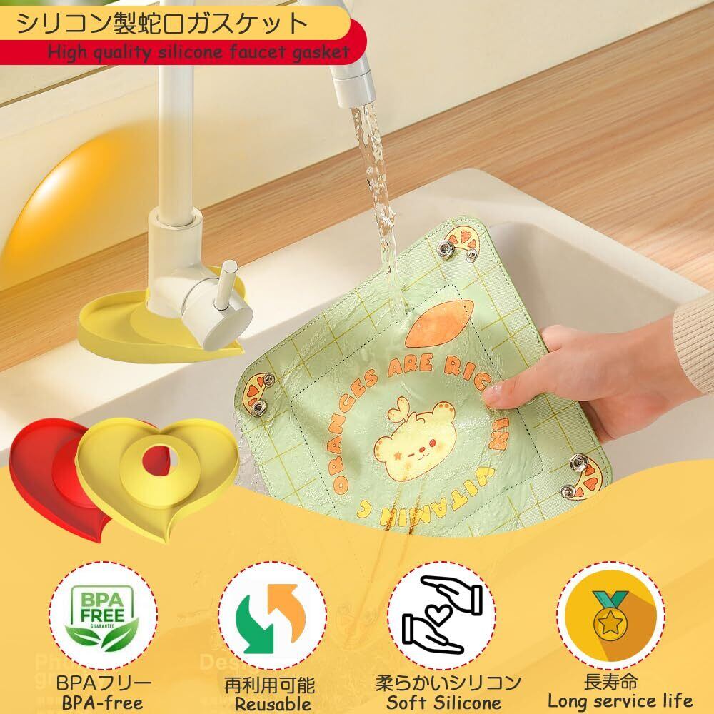 セット内容:蛇口排水マット2個セット;カラー:赤色+イエロー;形状:ハート形;ご購入前に蛇口ベースの大きさを測ってください;この水槽は耐摩耗性に優れたシリコンゴム素材で製造されており、優れた耐久性と品質を誇ります。