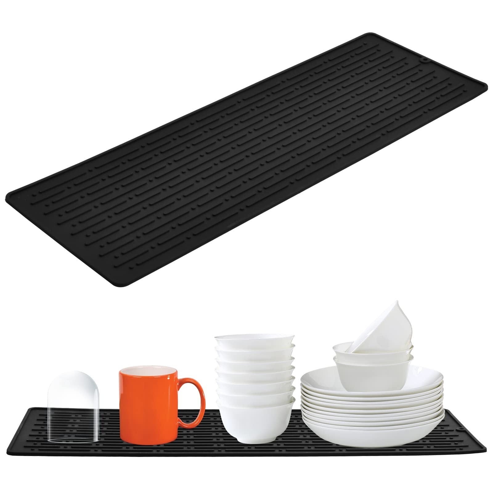 シリコン水切りマット 40.5x14.5cm ブラック 速乾 抗菌 防カビ