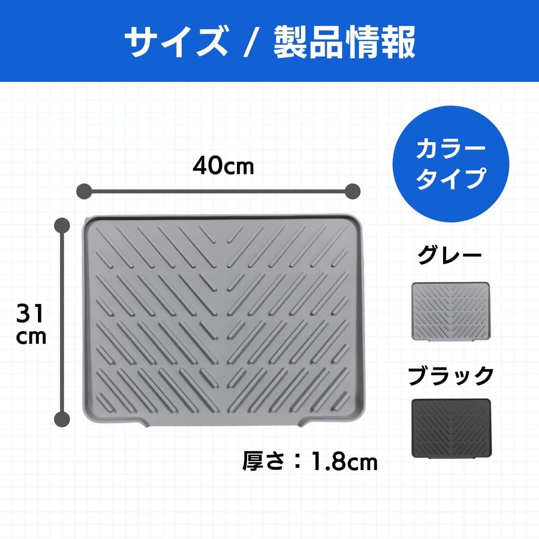 【特価商品】ateena 水切りマット キッチン 食器 水切り シンクマット シリコン 耐熱 シリコンマット 流し台 台所 調理台 (グレー, 40cm×30cm)