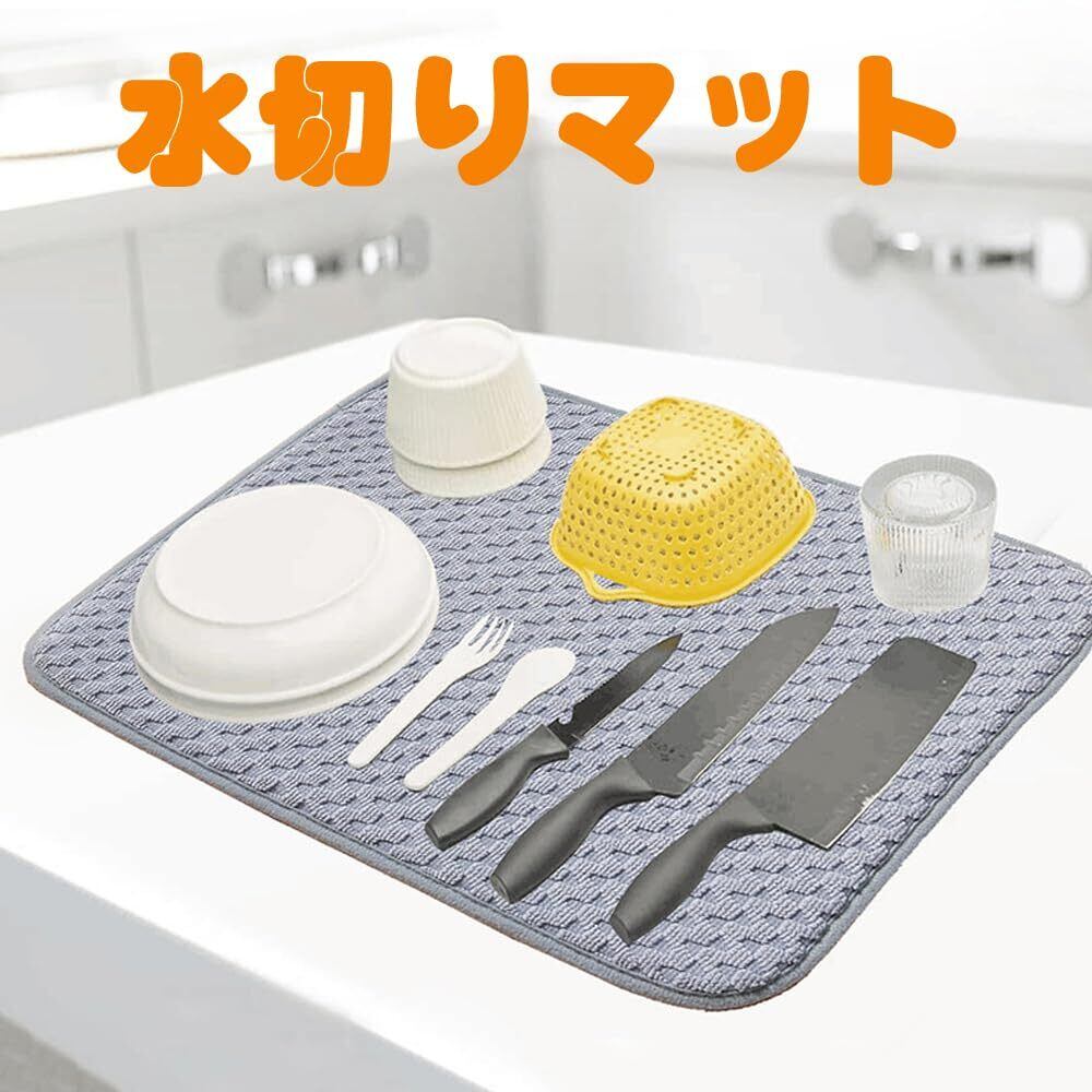 【吸水性抜群】厚手で食器だけでなくキッチン作業台の水ハネも素早く吸収し、速やかに乾燥します。キッチン食器乾燥機マットは、食器棚の下の滴をキャッチし、鍋、フライパン、食器、ガラス製品を直接排水マットの上に置き、または、洗浄後に果物を乾燥させることもできます。プレートマットやバーマットとして使用できます。