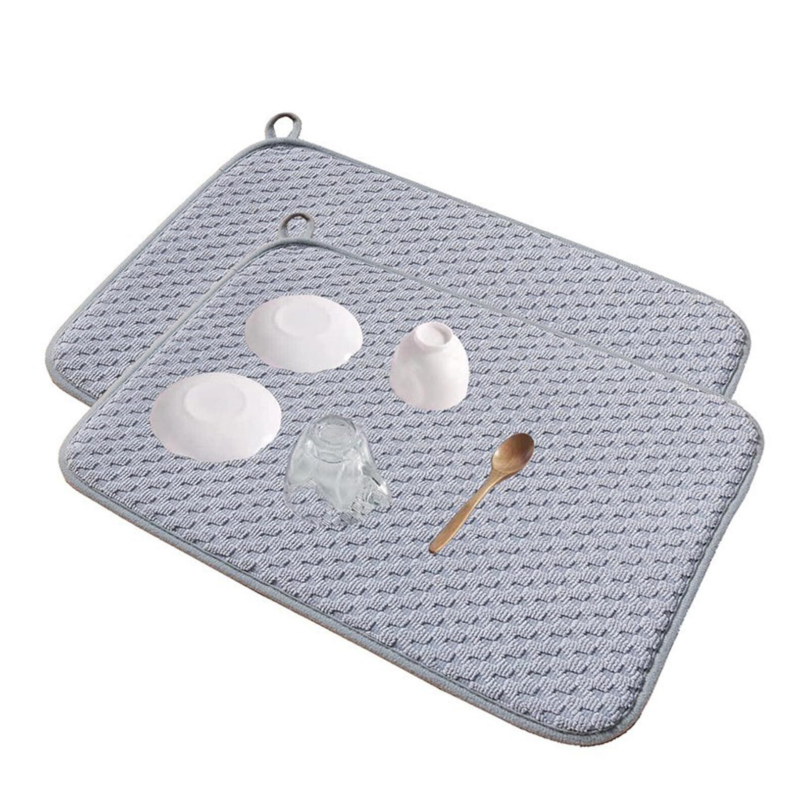 Dekori 水切りマット 速乾吸水マット2枚セット食器乾燥マット キッチン マイクロファイバー 保護シート簡単収納 ループ付き丸めて収納 食器 水切り洗濯可能 30x40cm