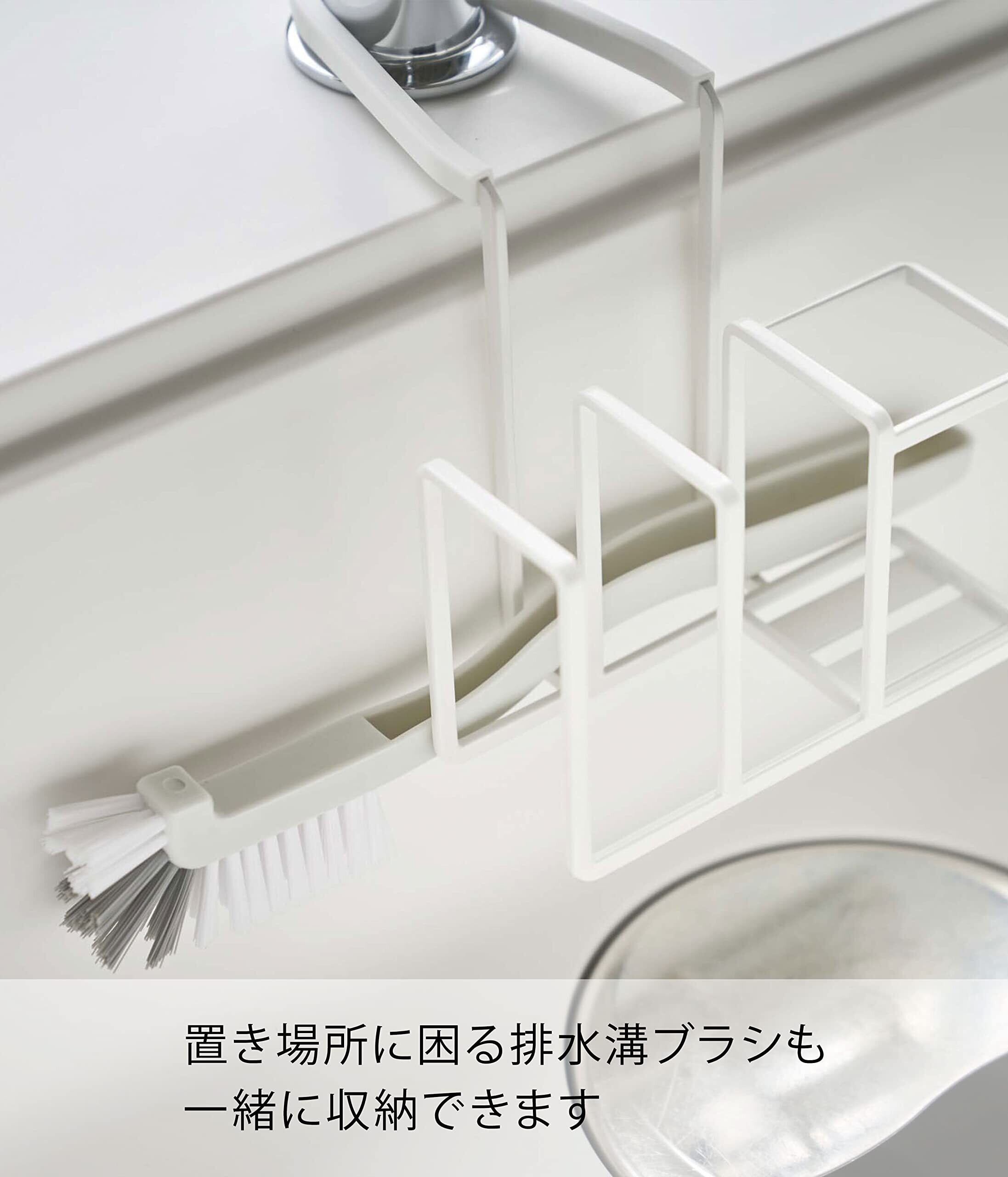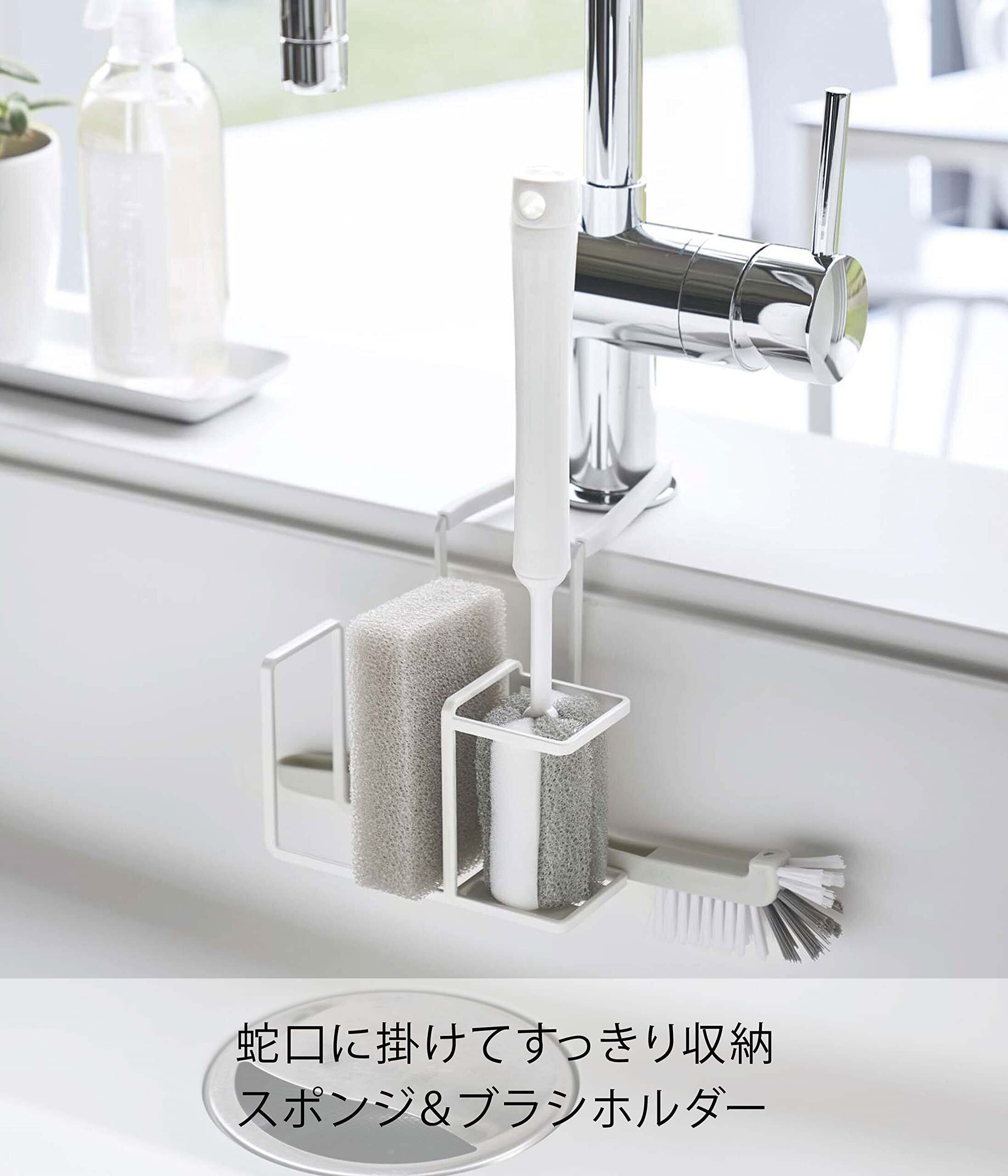 【2022最新】山崎実業(Yamazaki) 蛇口にかけるスポンジ&ブラシホルダー ホワイト 約W14XD7.5XH13cm プレート スポンジ置き スポンジラック ブラシスタンド 5082
