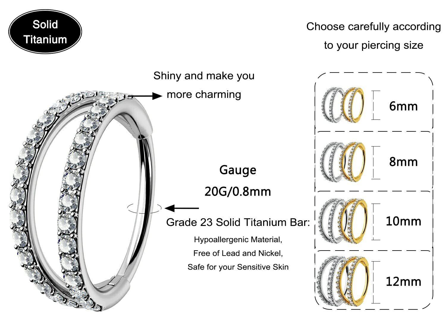 OUFER ボディピアス チタン ノーズピアス リング フープ ダブルライン クリア CZ パヴェ セプタム リング 20G ダイス ルック コンク イヤリング ヘリックス ピアス ジュエリー ヘリックス イヤリング