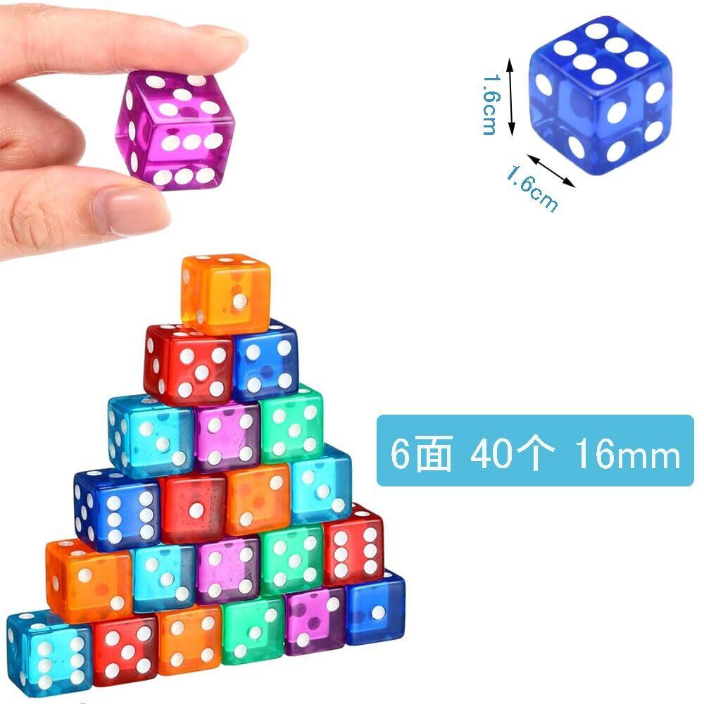 【人気商品】サムコス サイコロ ダイス 6面ダイス 直角 透明 8色 40個 16mm 雑貨 おもちゃ 複数のゲームが利用可能 テーブルゲーム用 授業 活動 ゲーム用品