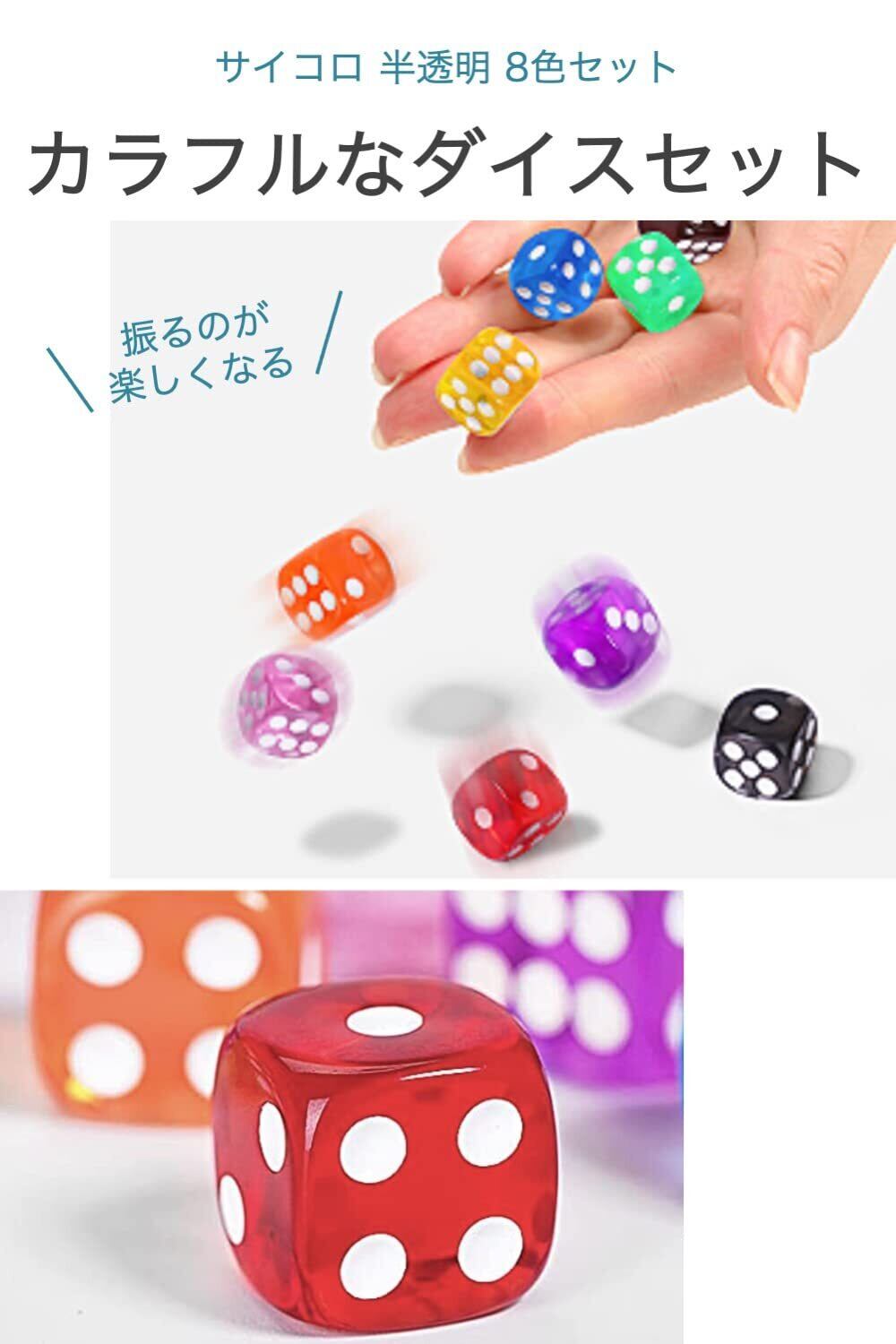 サイコロ 半透明 8色セット アクリル製でクリアな質感 カラフルでかわいい四角ダイス 卓上ゲームなどに