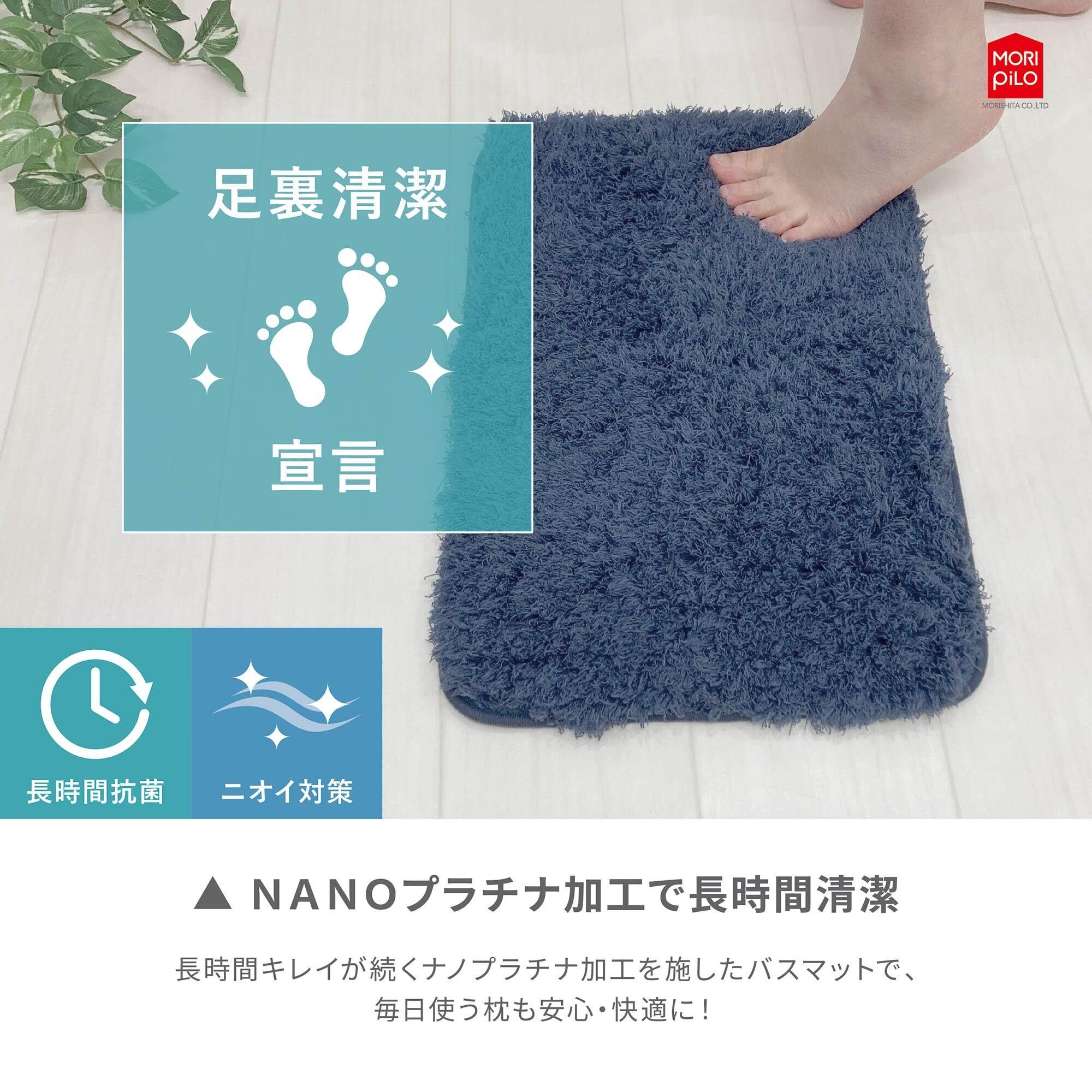 MORIPiLO バスマット タオル地 洗える (医師が認めたプラチナ抗菌 アスクドクターズ) お風呂マット 足拭き 浴室 玄関 室内用 (臭くならない Ask Doctors ネイビー 35x50cm) まくらのモリシタ