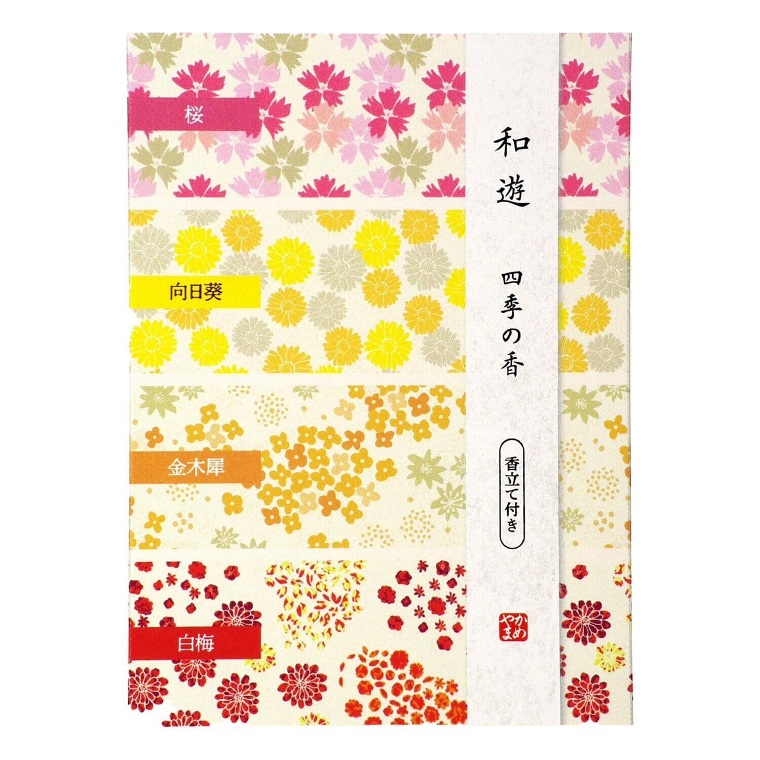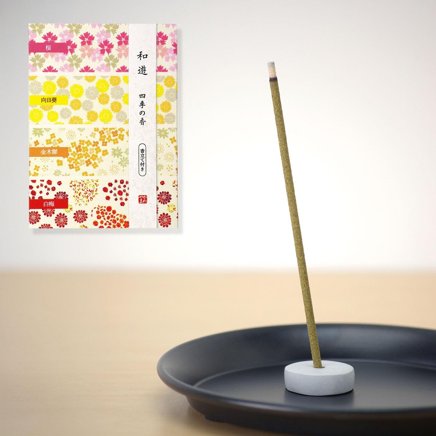 カメヤマ 和遊 アソート 四季の香(桜/白梅/金木犀/向日葵)1セット お線香 お香 香立て付き
