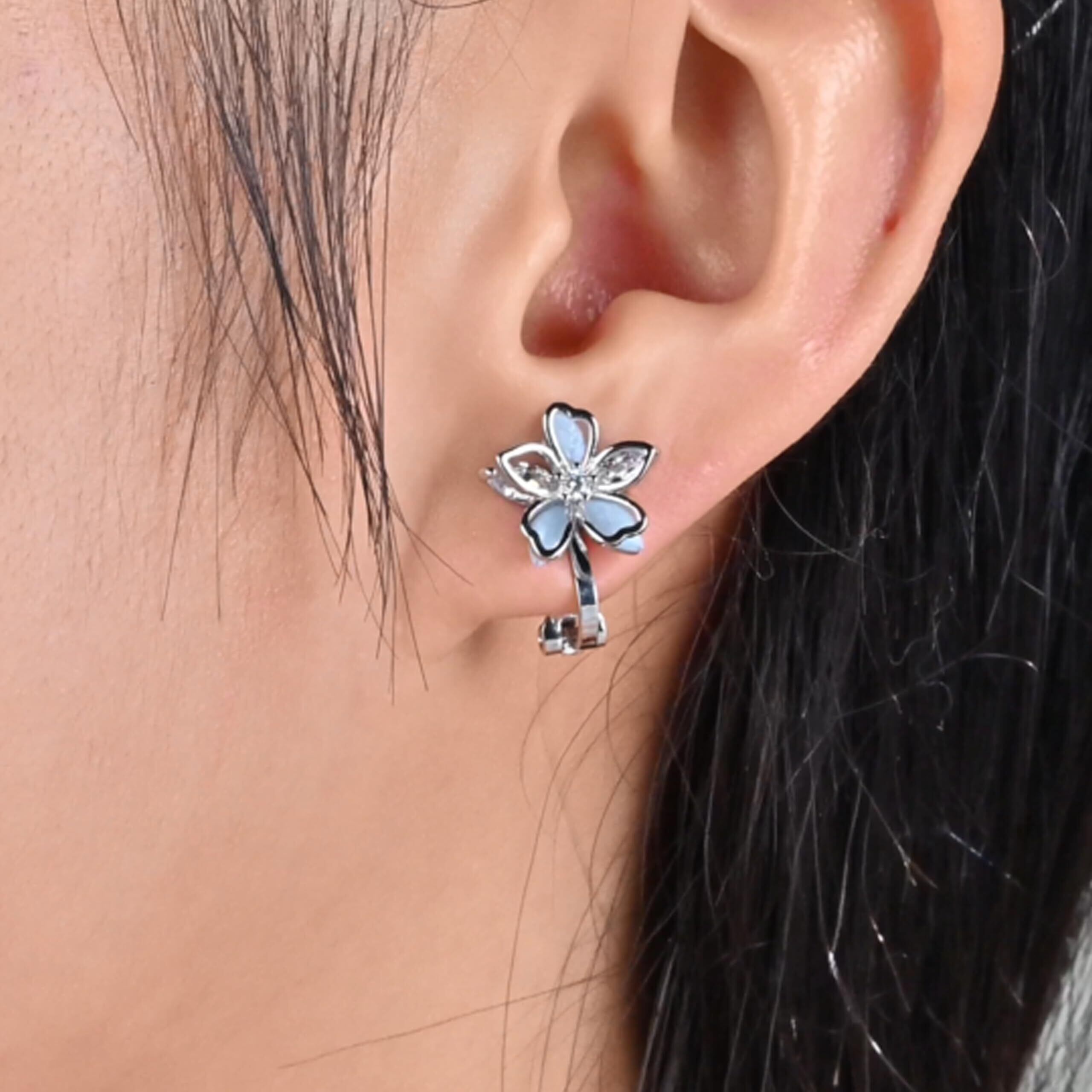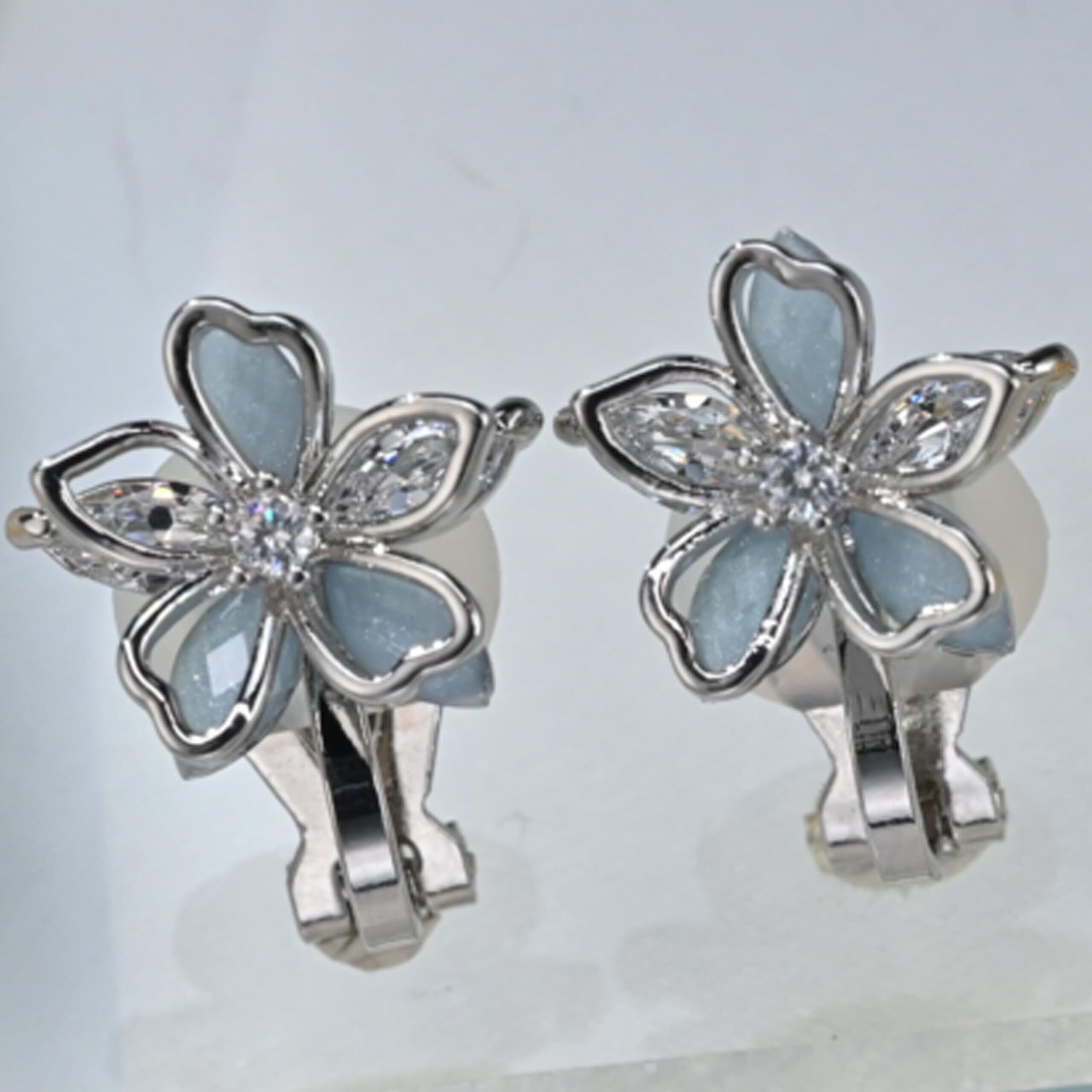 涼やかな光、二重の桜の詩:シルバーの透かし桜モチーフが繊細な陰影を作り出し、上品でモダンな印象を与えます。下層の淡いブルー花びらとジルコニアの組み合わせが、清涼感ある輝きを演出