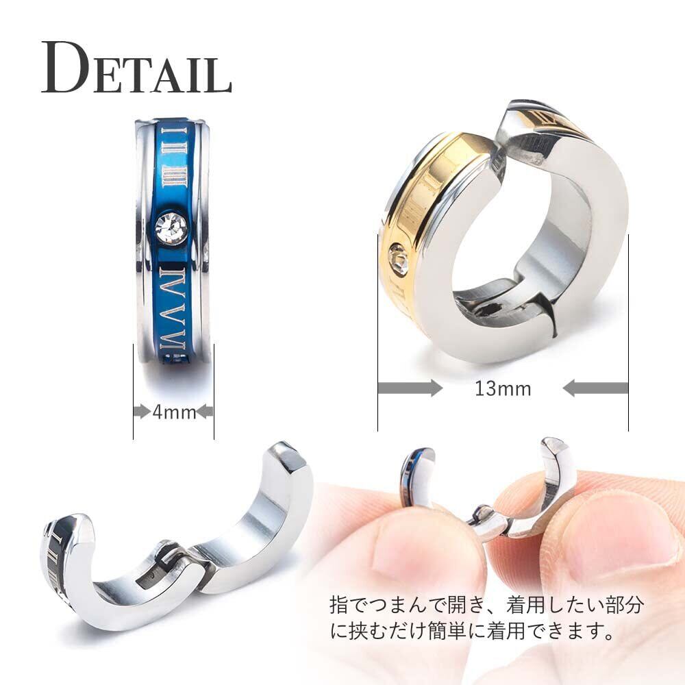 [Puente] フェイクピアス メンズ レディース ステンレス イヤリング フープイヤリング 両耳セット ローマ数字 フープ リング ノンホールピアス