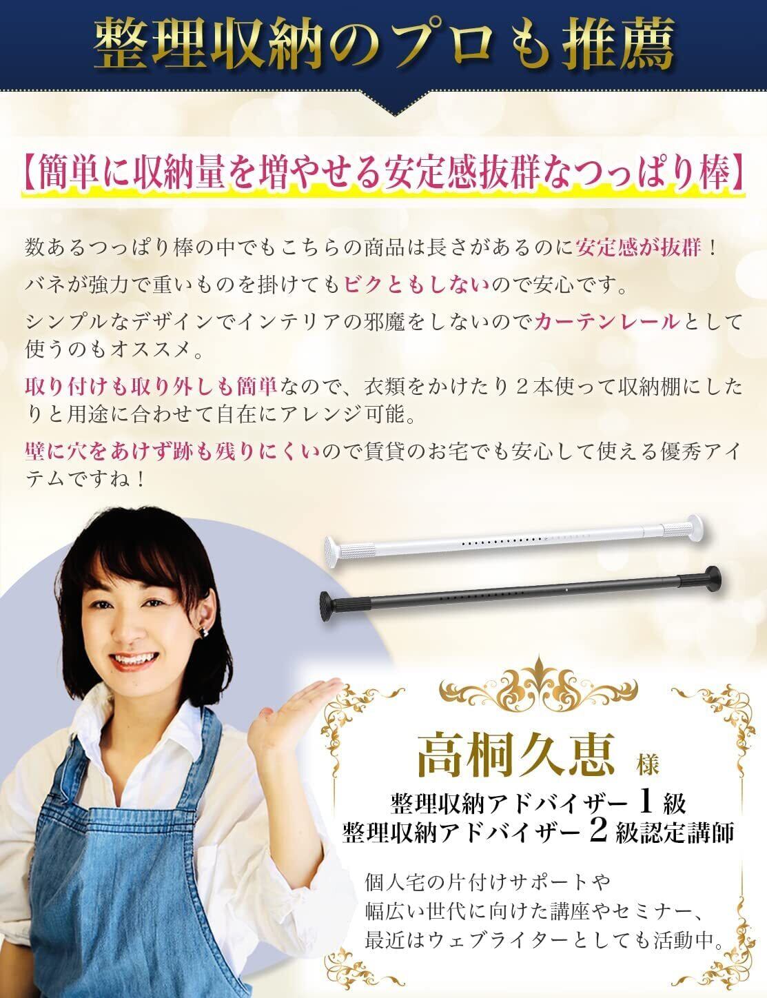 簡単に取り付けられる強力突っ張り棒! カーテンレール・キッチン・クローゼット・玄関などの収納にもオススメ。 √好きな場所に収納スペースを作れる。 √空間を有効活用するスタイル。 √おしゃれな色味で、お部屋にすっと馴染む。