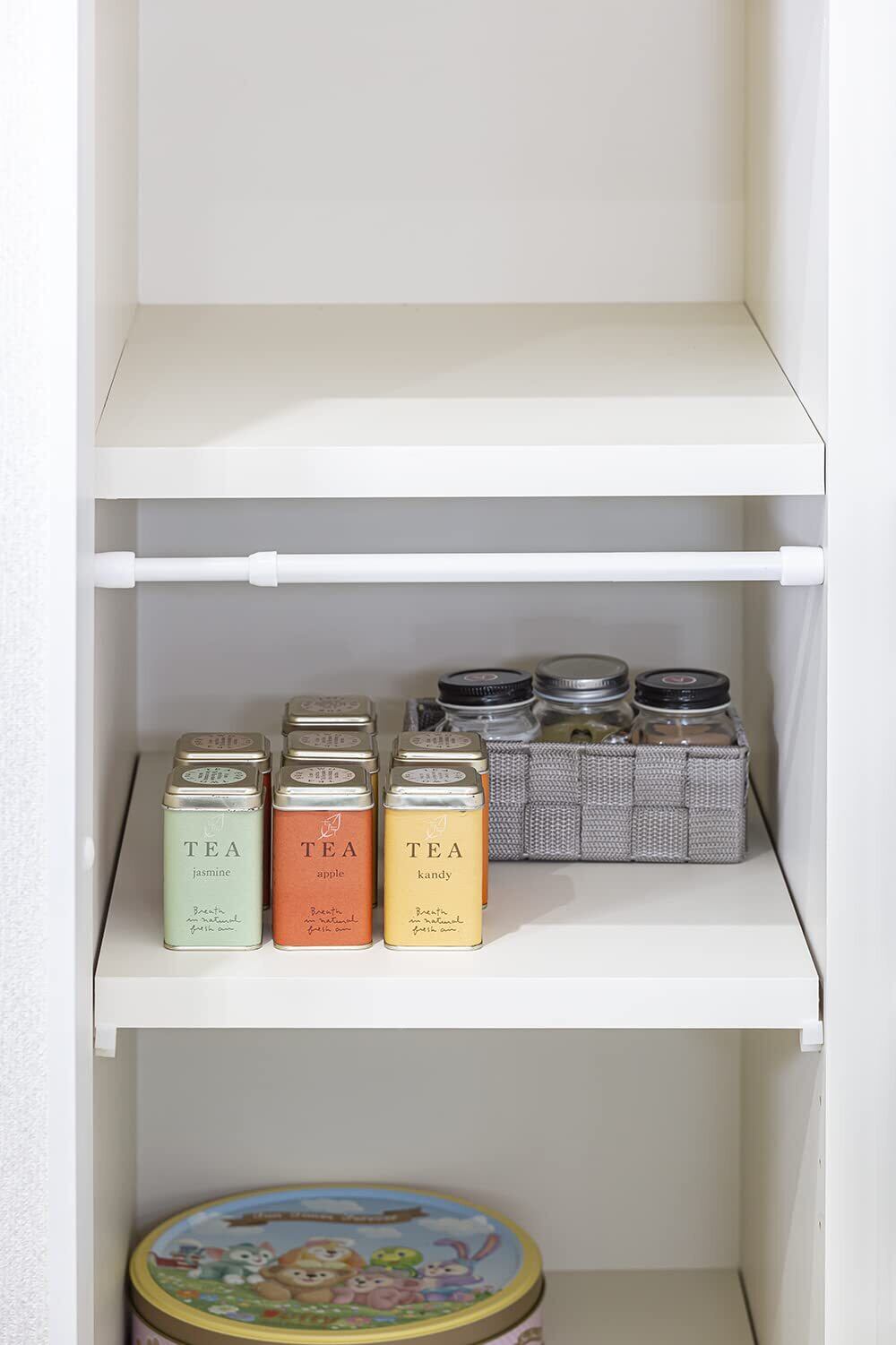 清潔感あるホワイトカラ-の突っ張り棒。カーテン吊りや吊り収納に。ネジ・クギ不要で取り付けられる、伸縮自在の突っ張りポール。カーテンやのれんを使って、手軽に空間を間仕切りできます。キッチンツールや靴・傘など、デッドスペースが便利な収納スペースに。収納場所の間仕切りにも便利。傷を付けたくない場所でも、手軽に収納空間を作り出せます。サイズ(約):長さ30~44×高さ1.7cm(パイプ径13.7mm、10.7mm)(材質)パイプ:樹脂コーティングスチールパイプ、成型部品:ABS樹脂、ポリエチレン樹脂キャップ/FVA樹脂、ネジ・バネ:鉄(メッキ)