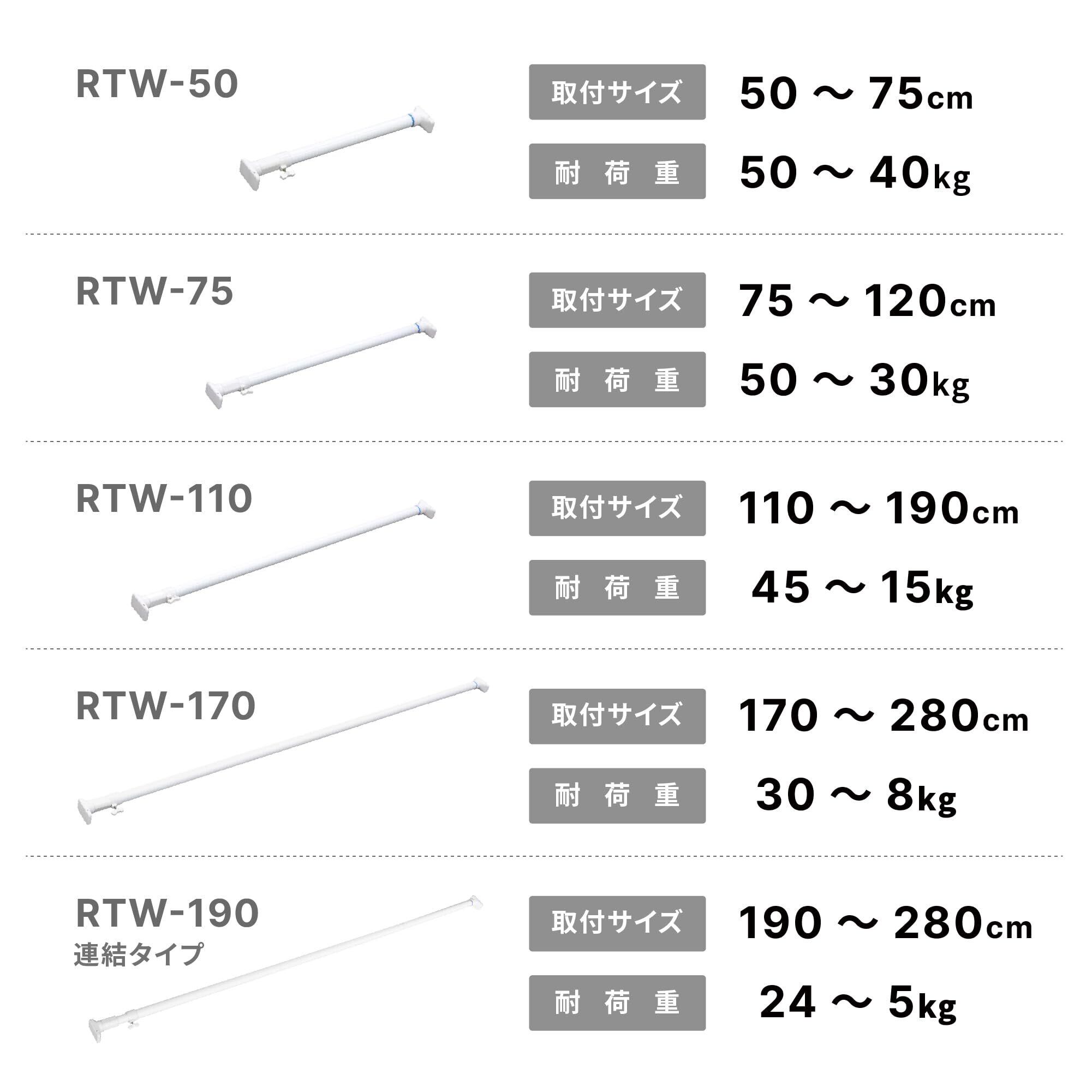 【在庫セール】HEIAN SHINDO つっぱり棒 ジャッキ式超強力タイプ ホワイト 幅75~120cm 耐荷重50~30kg パイプ直径3cm RTW-75A 平安伸銅工業