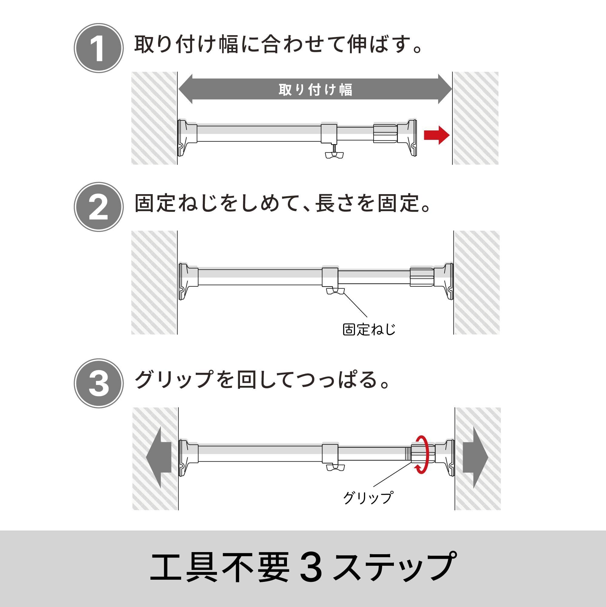 ○壁面を強力につっぱって取り付けますので、取り付け跡が残る場合があります。支障の無い所で使用してください。