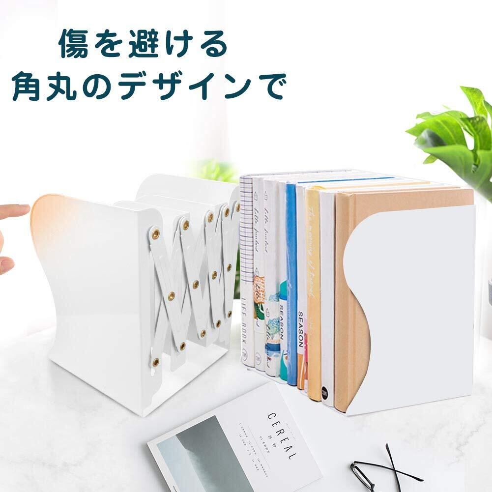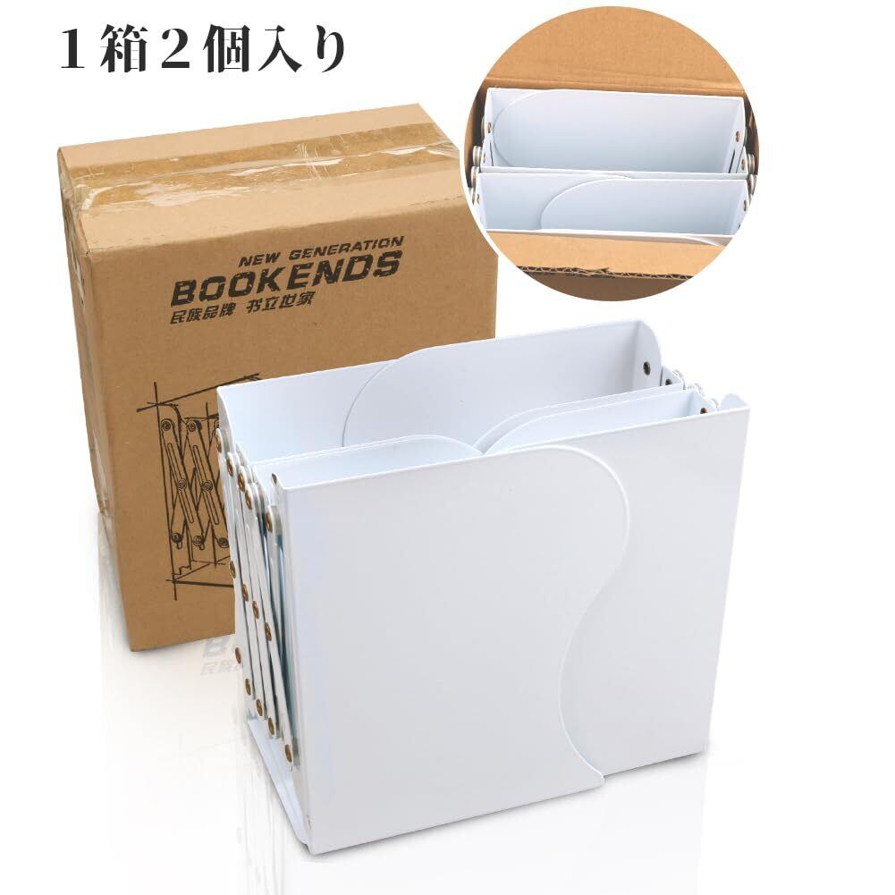 ブックエンド 2個入り 本立て 伸縮自在 卓上収納 倒れない ブックスタンド 金属製 仕切りスタンド デスク整理 (白)