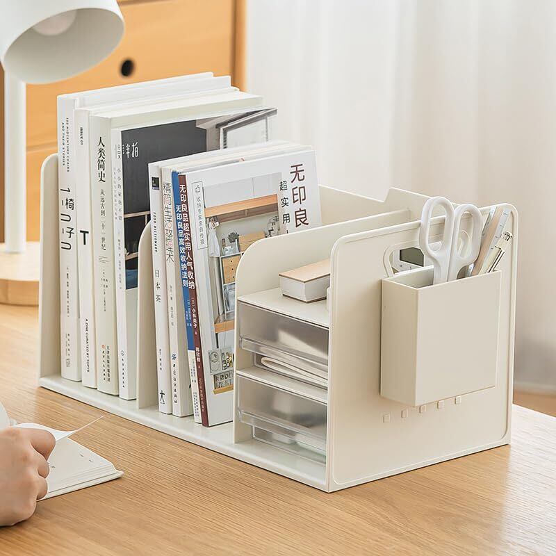【幅広い用途】デスクトップスペースを最大限に活用し、デスクトップを整頓することができます。文房具、書籍、雑誌、辞書、会議資料、メモ帳、電卓、充電器、化粧品、DVDなどデスク用品を収納できます。家庭、オフィス、学校、小さな寝室、本棚、ドレッサー、デスクトップ、ワークベンチに適しています。