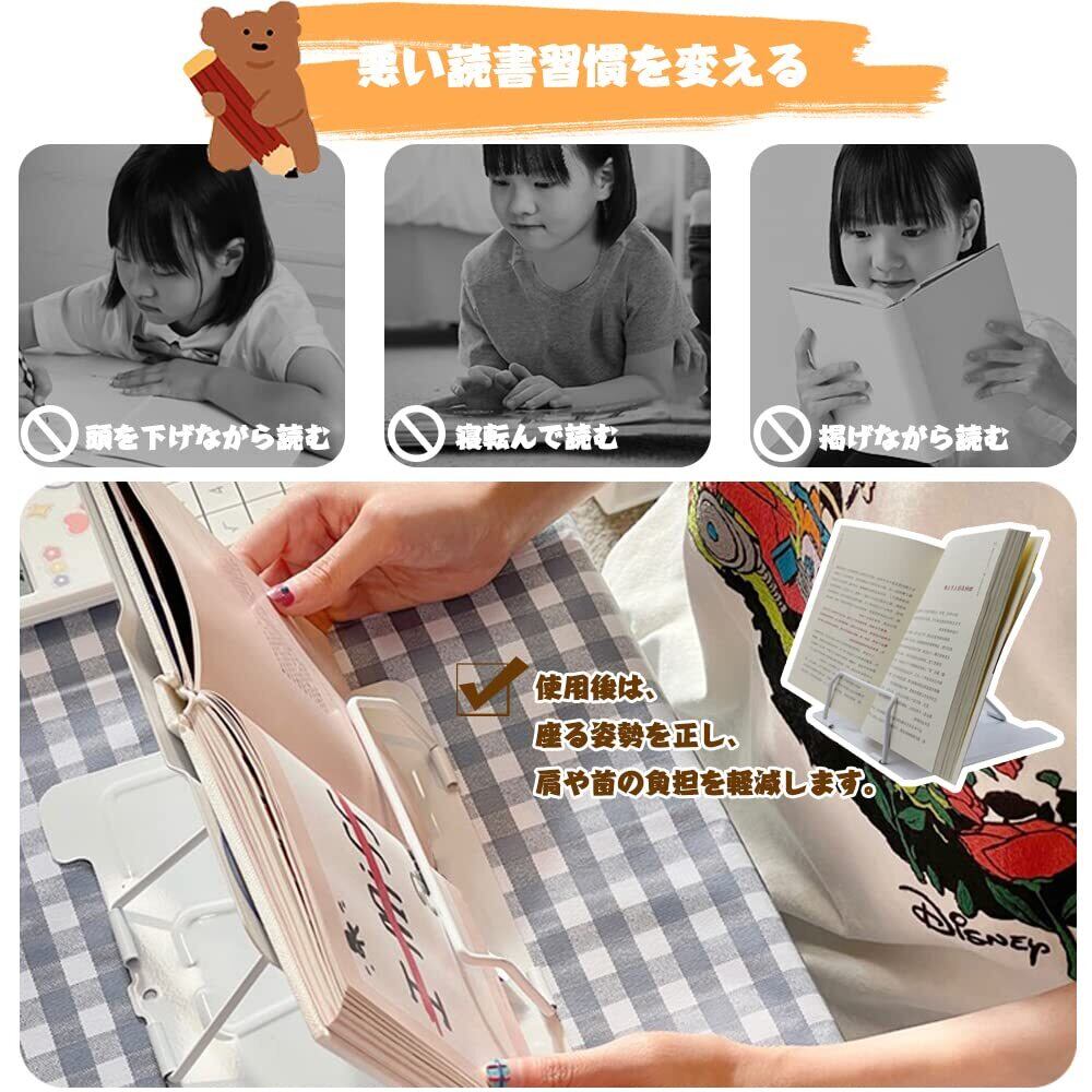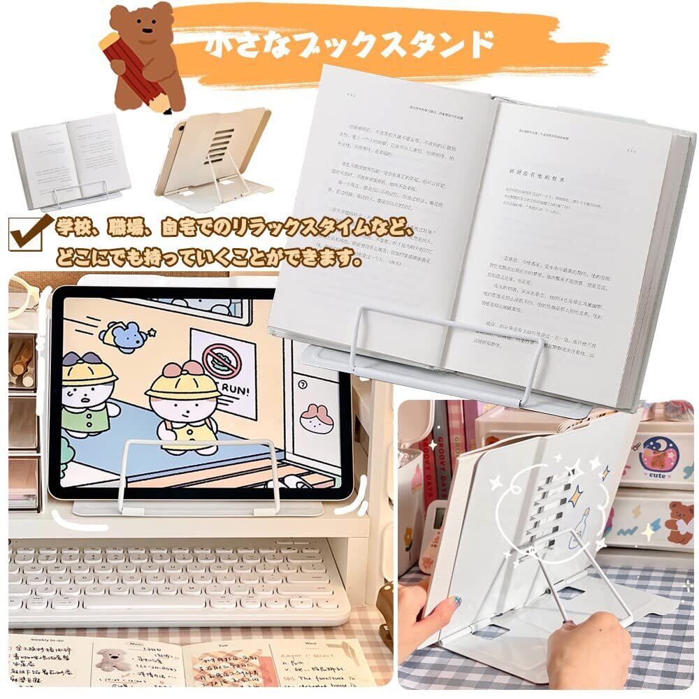 ブックスタンド 卓上 折り畳み ブックスタンド 1個セット 姿勢改善 6段階調整 多機能ホルダー ブックエンド 書見台 本立て 卓上 収納 おしゃれ 本棚 文房具 事務用品 家庭用 学校用 オフィス用 持ち運び可能 軽量で収納しやすい (ホワイト)