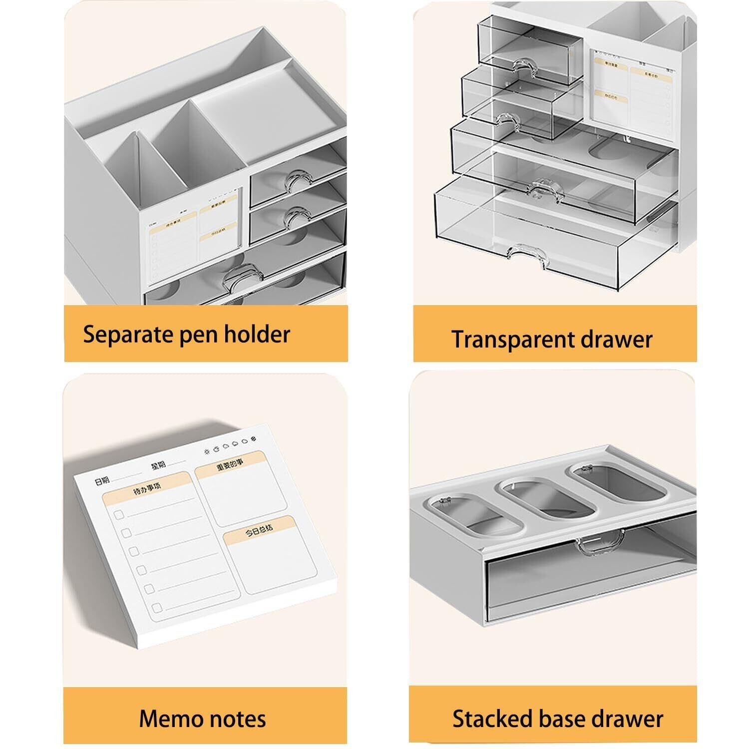 【特価商品】多機能 デスクオーガナイザー 卓上 2Pcs 4引き出し付き 小物収納 収納ボックス 小物入れ 卓上 文房具収納 収納ケース ボックス ペン立て リモコン 文房具 化粧品収納 家庭生活用 オフィス用 組立不要