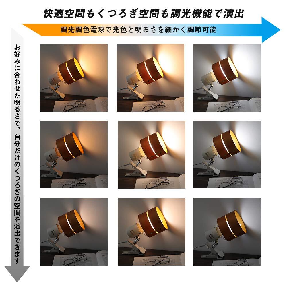 共同照明 クリップライト 調光調色LED電球40W形付き リモコン対応 GT-SETTD-MQJZ-B-6WT2-Y ブラウン E26 電気スタンド クリップ 間接照明 スイッチ付き 2環ウッドシェード おしゃれ コンセント式 インテリア照明 作業ライト リビング 寝室照明 インテリアライト
