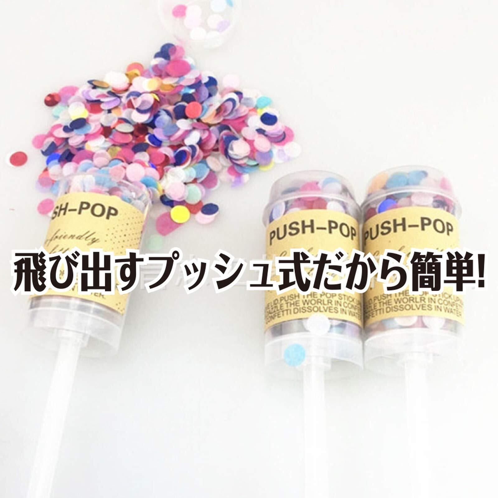 ・プラスチックのプッシュ式ケースにセットされた状態でお届け致します。棒をぐっと押し出して、紙吹雪をふんわり、きれいに押し出すことができます。届いたらすぐに使えるので便利!