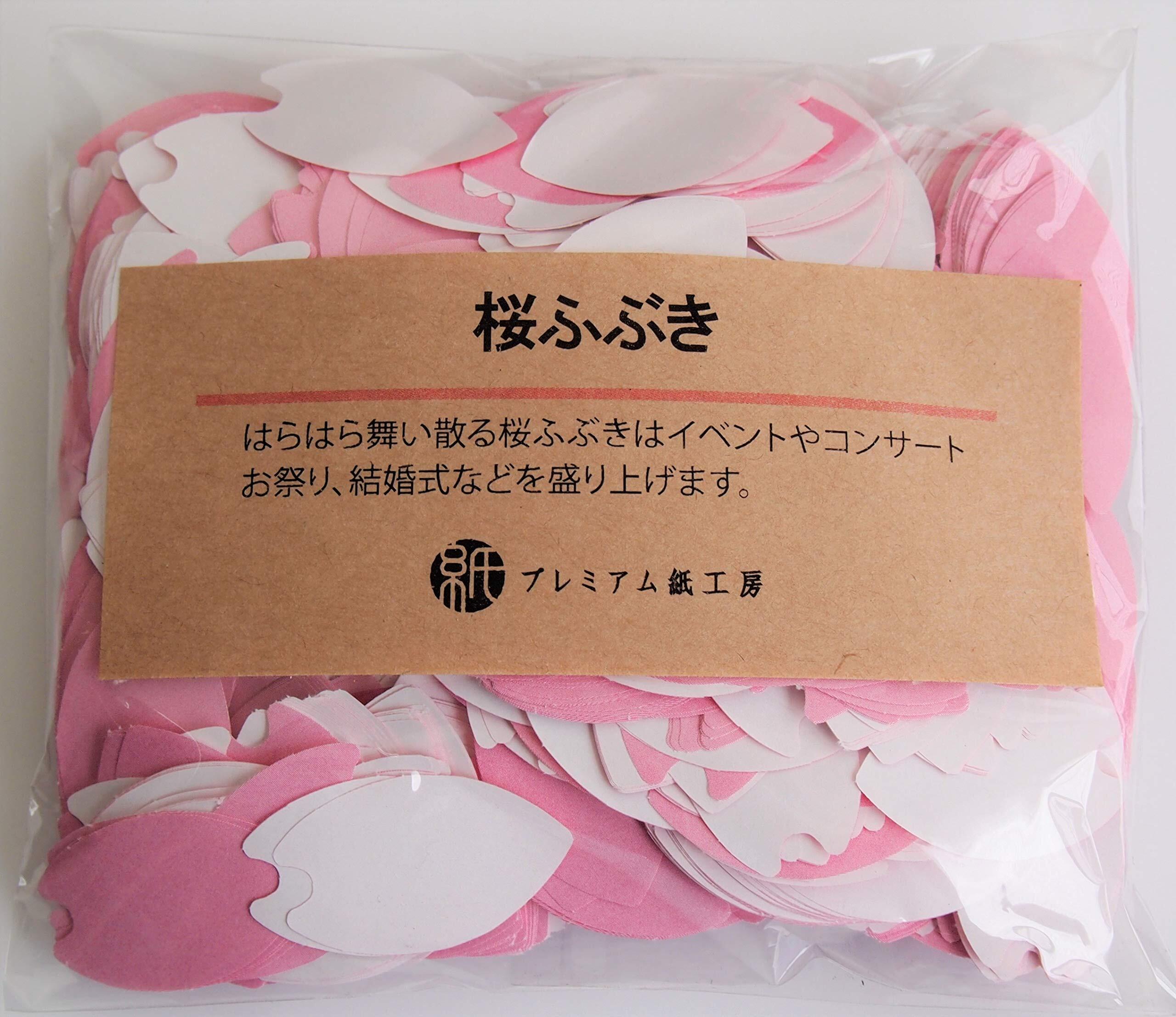 桜ふぶき 桜吹雪です。 桜の花びらの形状をした桜ふぶきでオモテがピンク ウラが白になっていますので、実際に舞っているときには、本当の桜のようです。