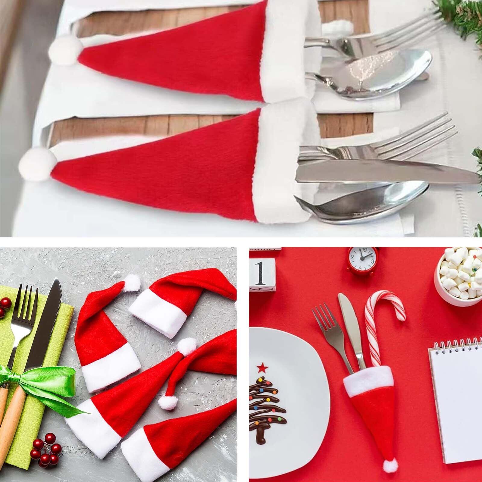 【2022最新】サンタ 帽子 ミニ 8個セット 小さなサンタ帽子 ミニサンタ帽子 ワインボトルサンタ帽子 かわいい ロリポップ帽子 クリスマスの装飾 食卓用 テーブル ディナー装飾ギフト 飾り キャンディ飾り 銀製品ホルダー