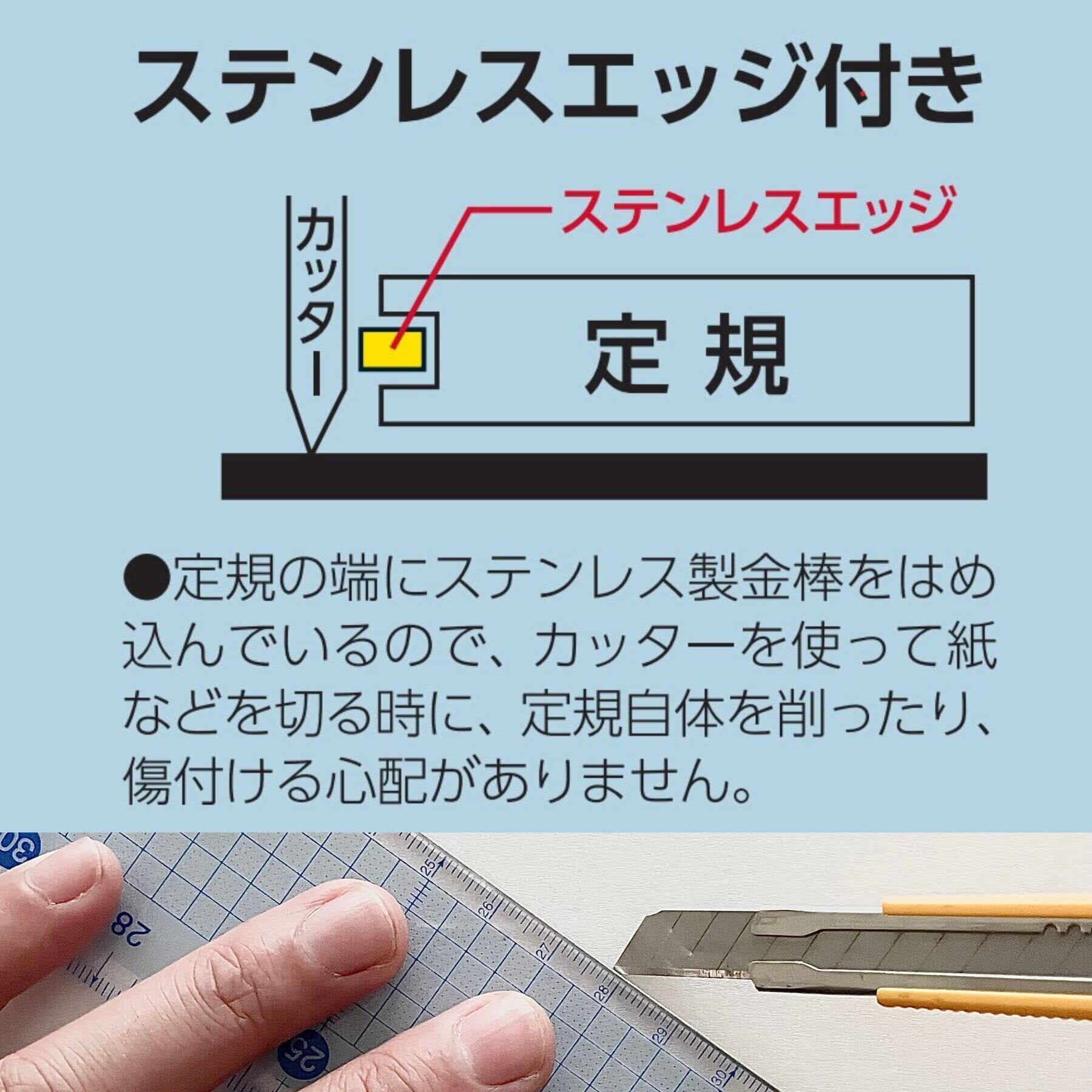 ステンレス製の金棒をはめ込んであるので、カッター等で定規を削っ たり、傷をつける心配がありません。
