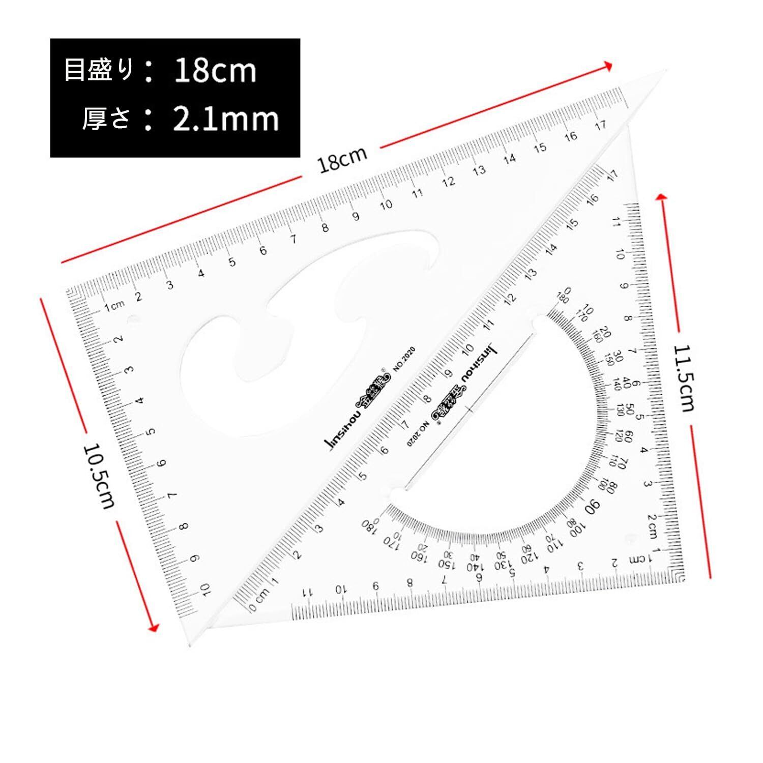 三角定規 三角定規 製図用 文房具 事務用 受験用 定規セット 幾何学 作図ツール (透明, 20cm)
