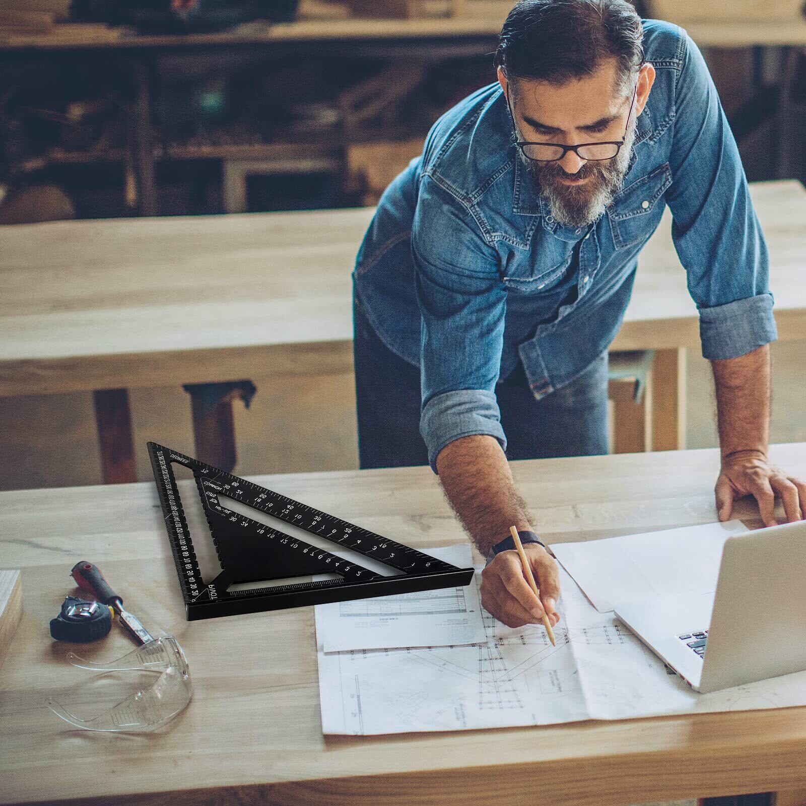 4.両面目盛り付き、作業に合わせて表も裏も使用可能。木工三角定規の裏面に単位換算表を装備し、作業中の手間を削減します。