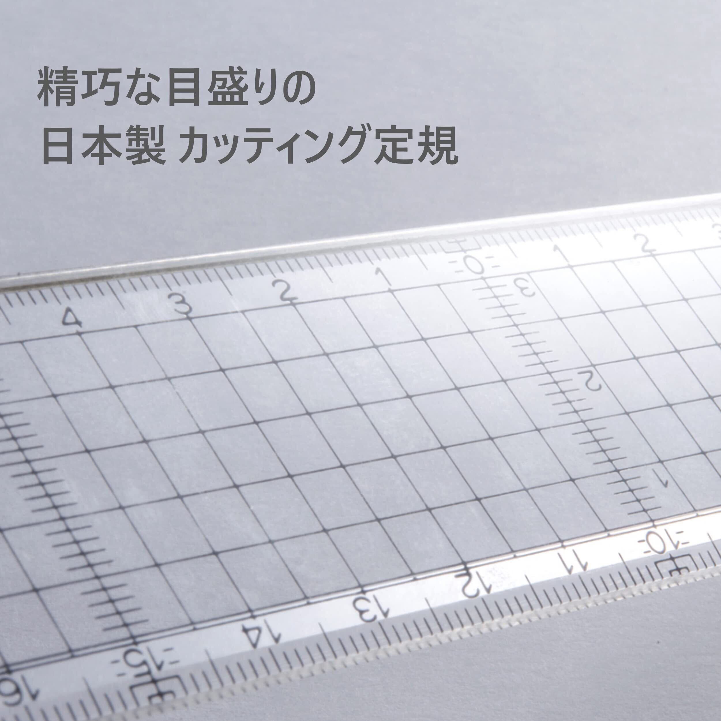 ●厚さ:3mm●5mm方眼・1mm点線平行目盛付き●ステンレス製カッティング専用エッジ付き●グレイインクを使用している為、濃い色の紙上でも目盛りが読みやすくなっています。