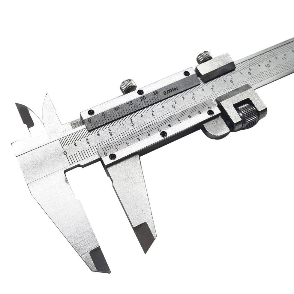 高精度測定: 炭素鋼製の150mmノギスで、0.001in, 0.02mm単位の精密な測定が可能です