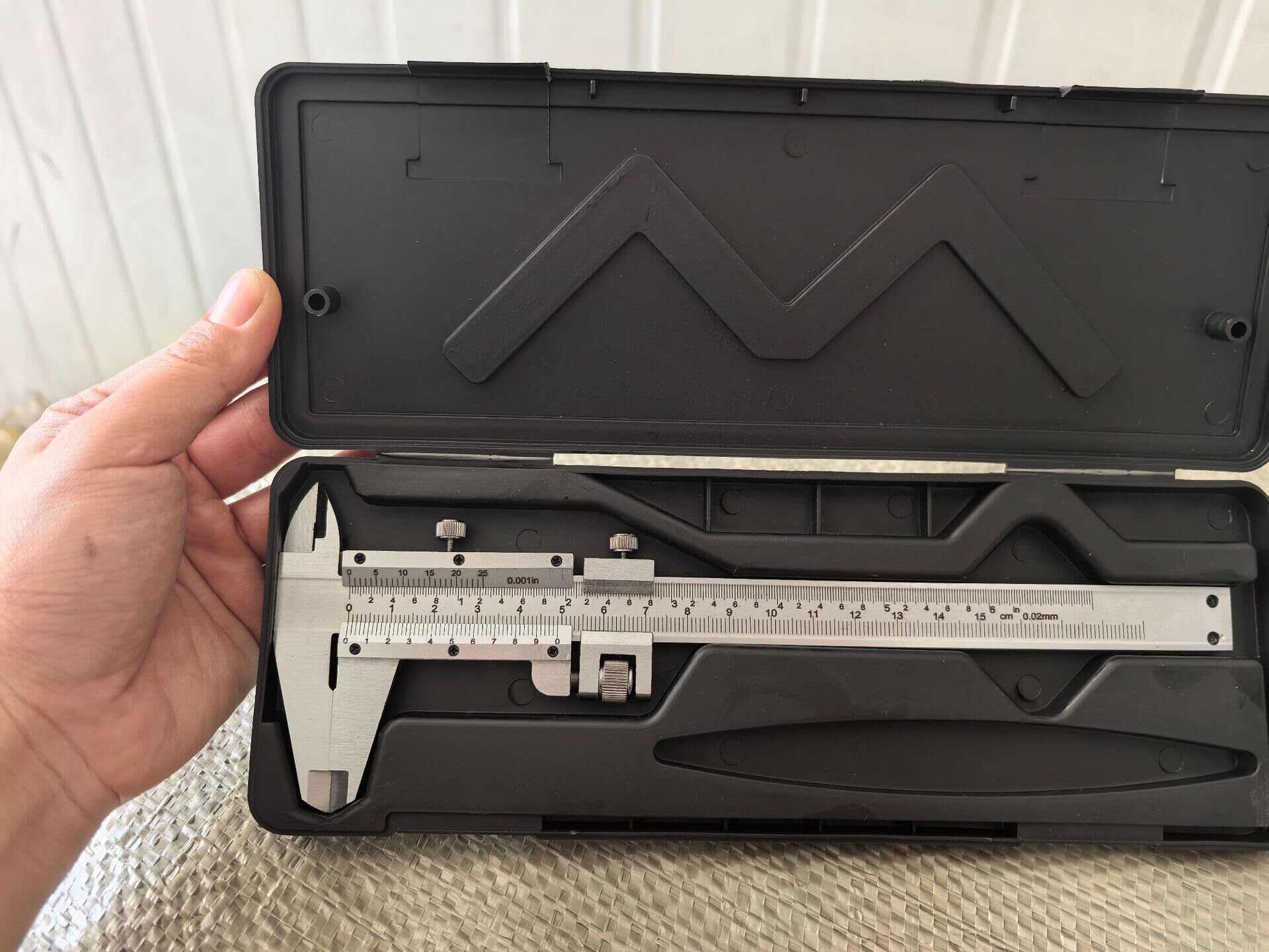 精密ノギス 150mm, 炭素鋼製, デュアルスケール目盛付き, 高精度測定工具, 微調整可能, 収納ケース付属