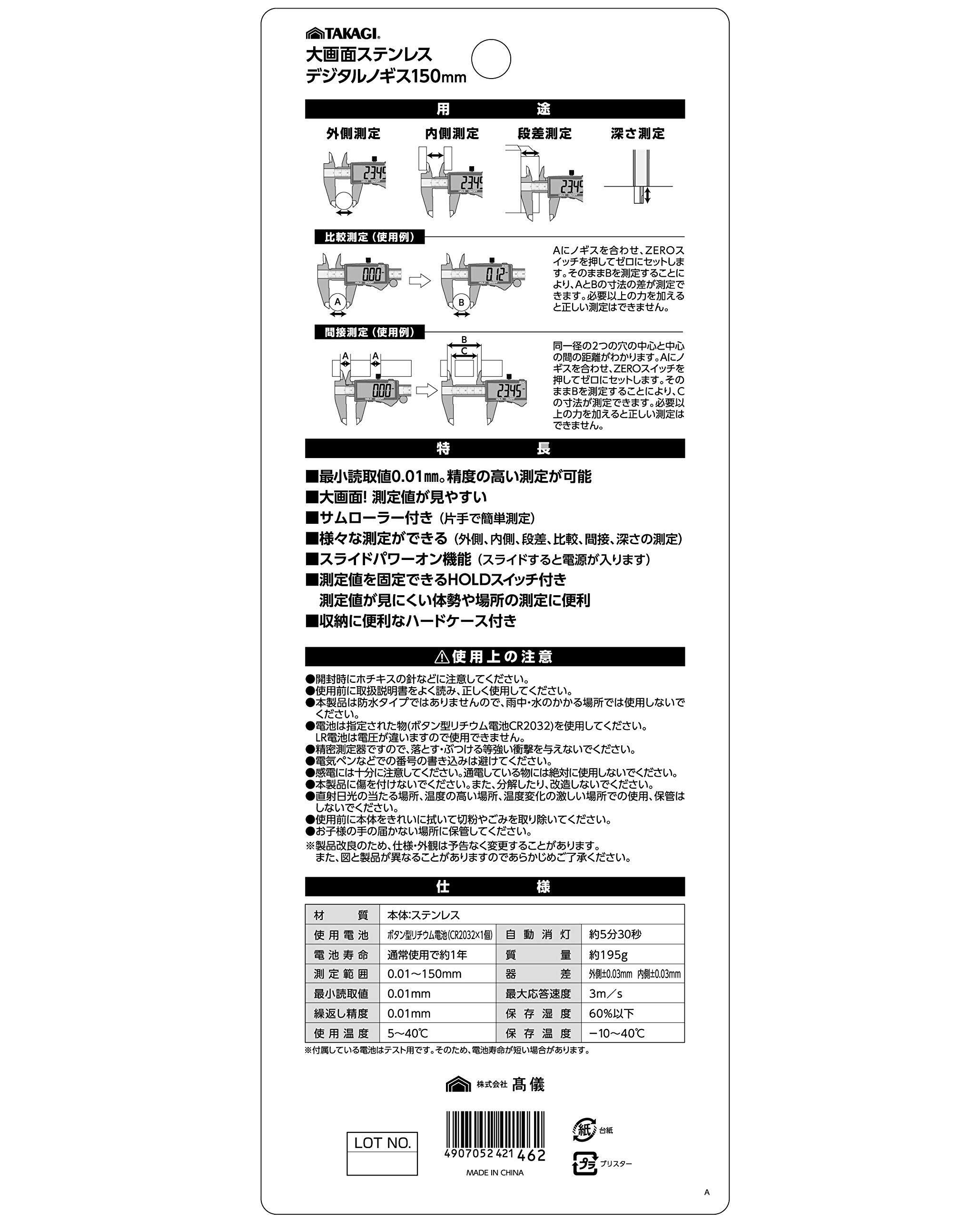 高儀(Takagi) 大画面 ステンレス デジタルノギス 150mm
