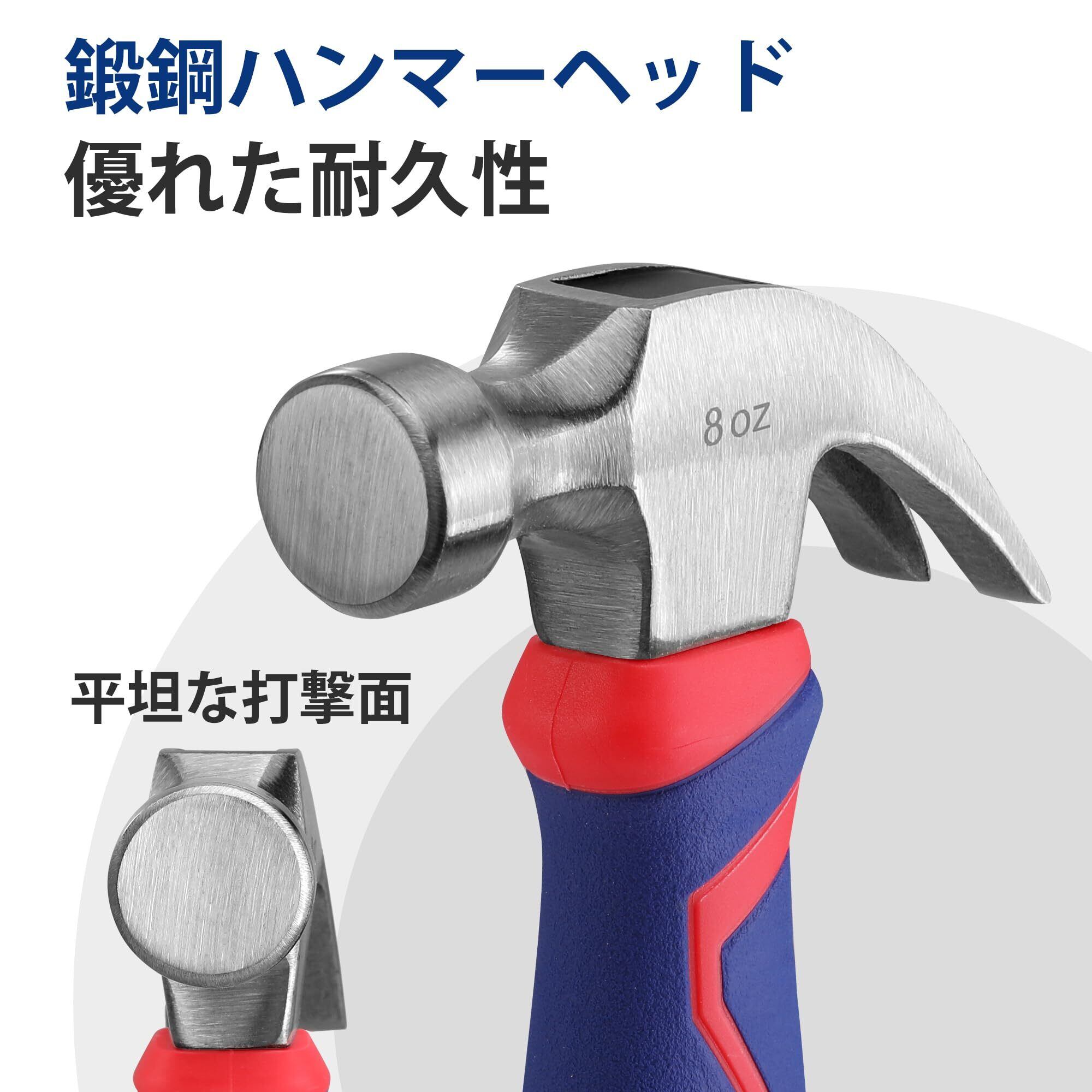 WORKPRO ショートネールハンマー 釘抜きハンマー ミニトンカチ 金槌 クローハンマー ファイバーグラス柄 衝撃低減 滑り止め 木工 ホームメンテナンス DIY 225g(8oz) 全長165mm