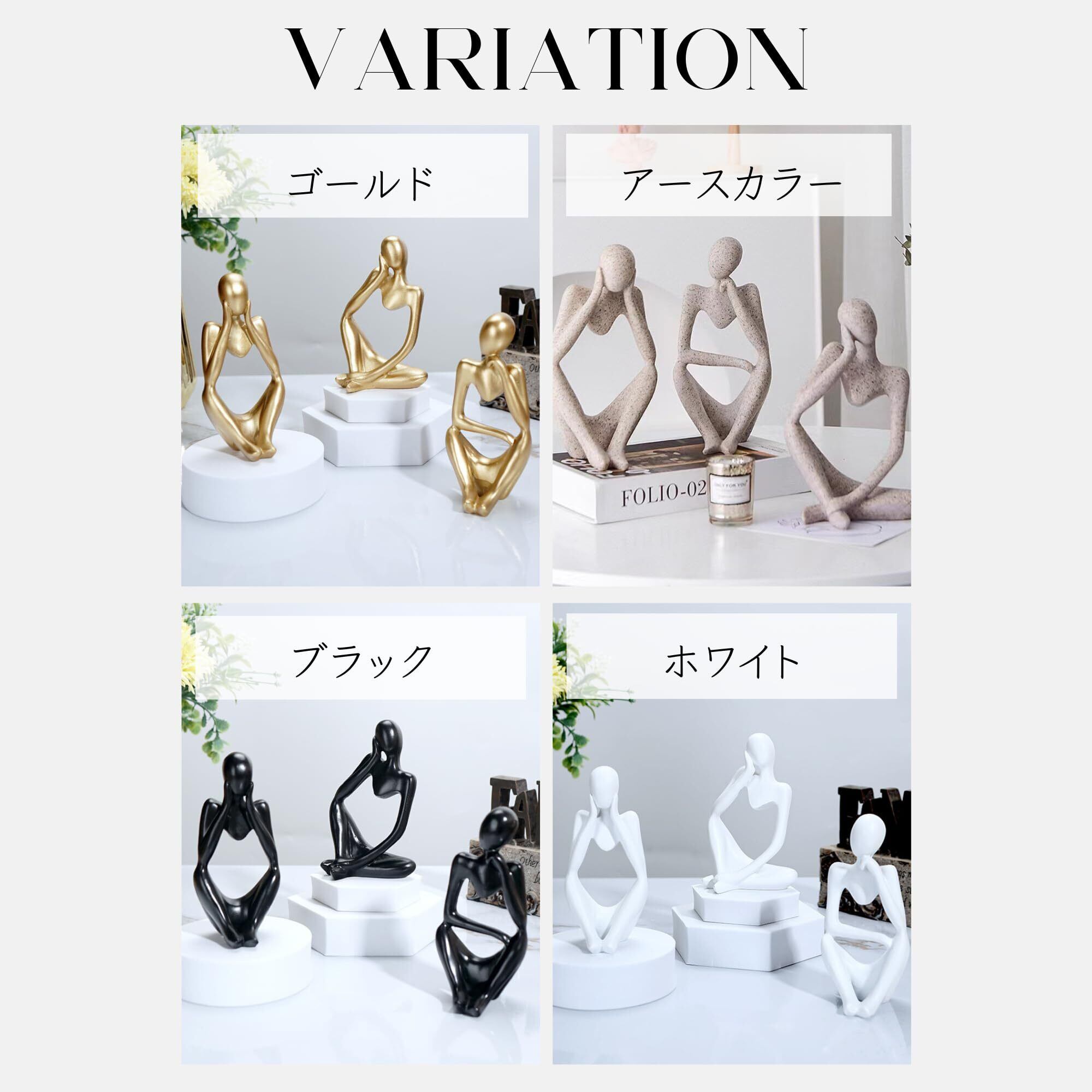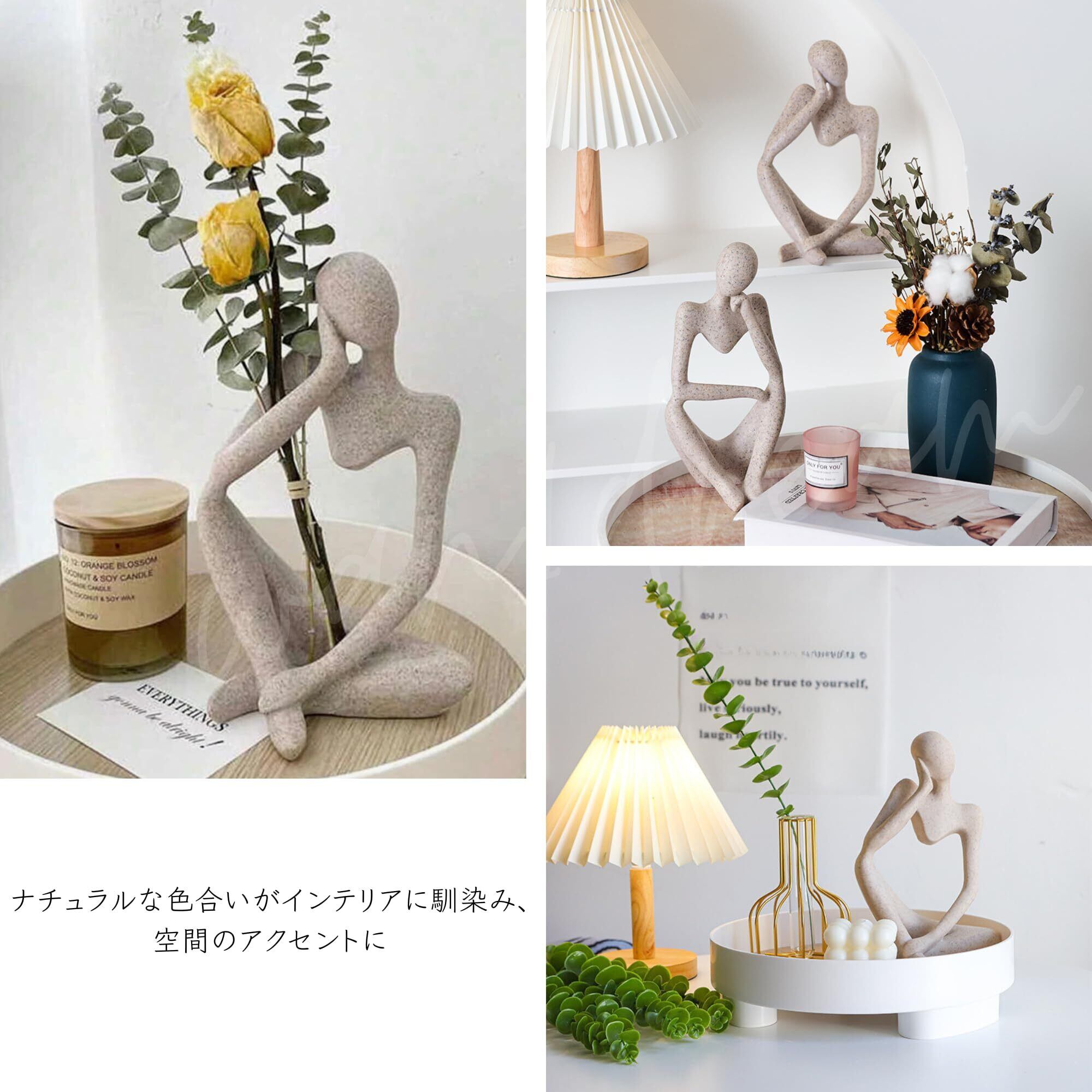 【2022最新】ヒューマンオブジェ【シンキングスタイル-3体セット】 人型オブジェ 置物 抽象アート モダン インテリア 雑貨 デコレーション 彫刻 飾り おしゃれ コンパクト 卓上 リビング 玄関 書斎 考える人 (アース)