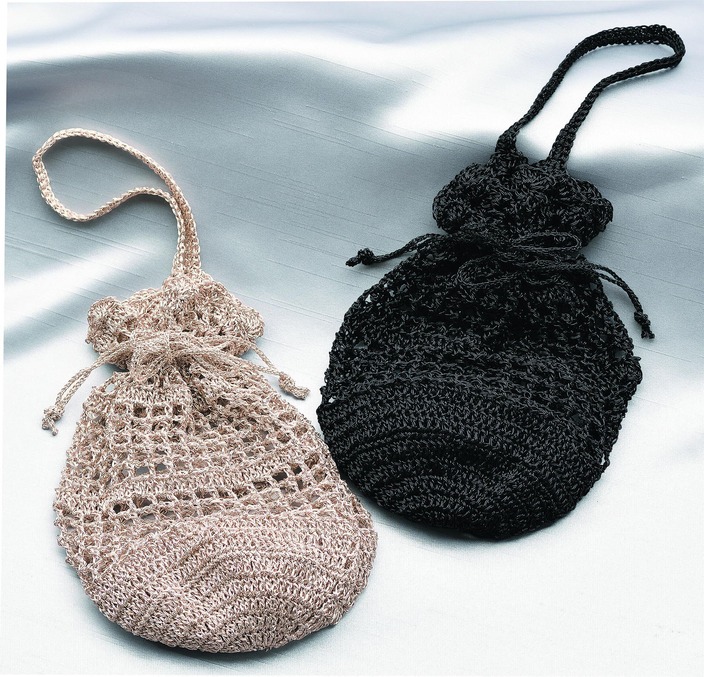 タカギ繊維 Panami 編み物 キット メタリック フリー コード ブライト で編む 巾着 バッグ (ブラック) FC-4