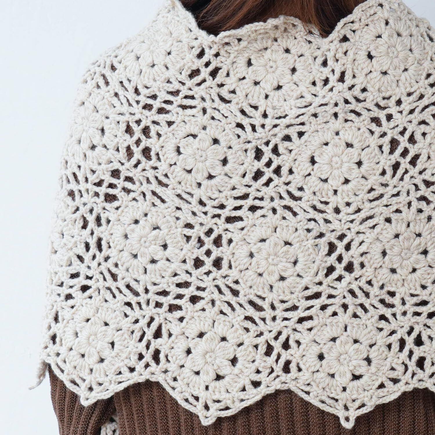 かぎ針7/0号でザクザクとモチーフ編んでつなげる大判ショールの編み物キット