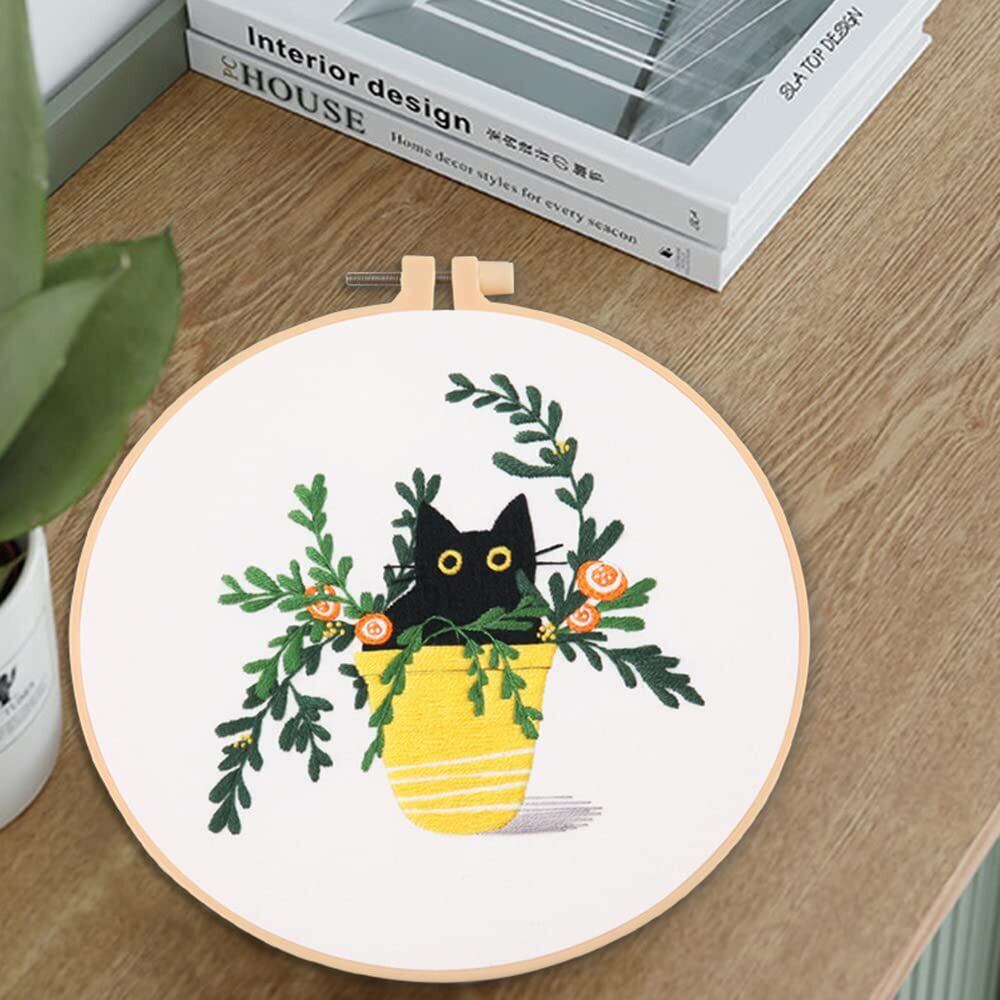 ししゅうキット 刺繡キット セット 初心者セット クロスステッチキット DIY刺繡工具 刺しゅう 手作り プレゼント 手芸キット 英語説明書付き かわいい ファッション きれい 黒猫 植物 (猫)