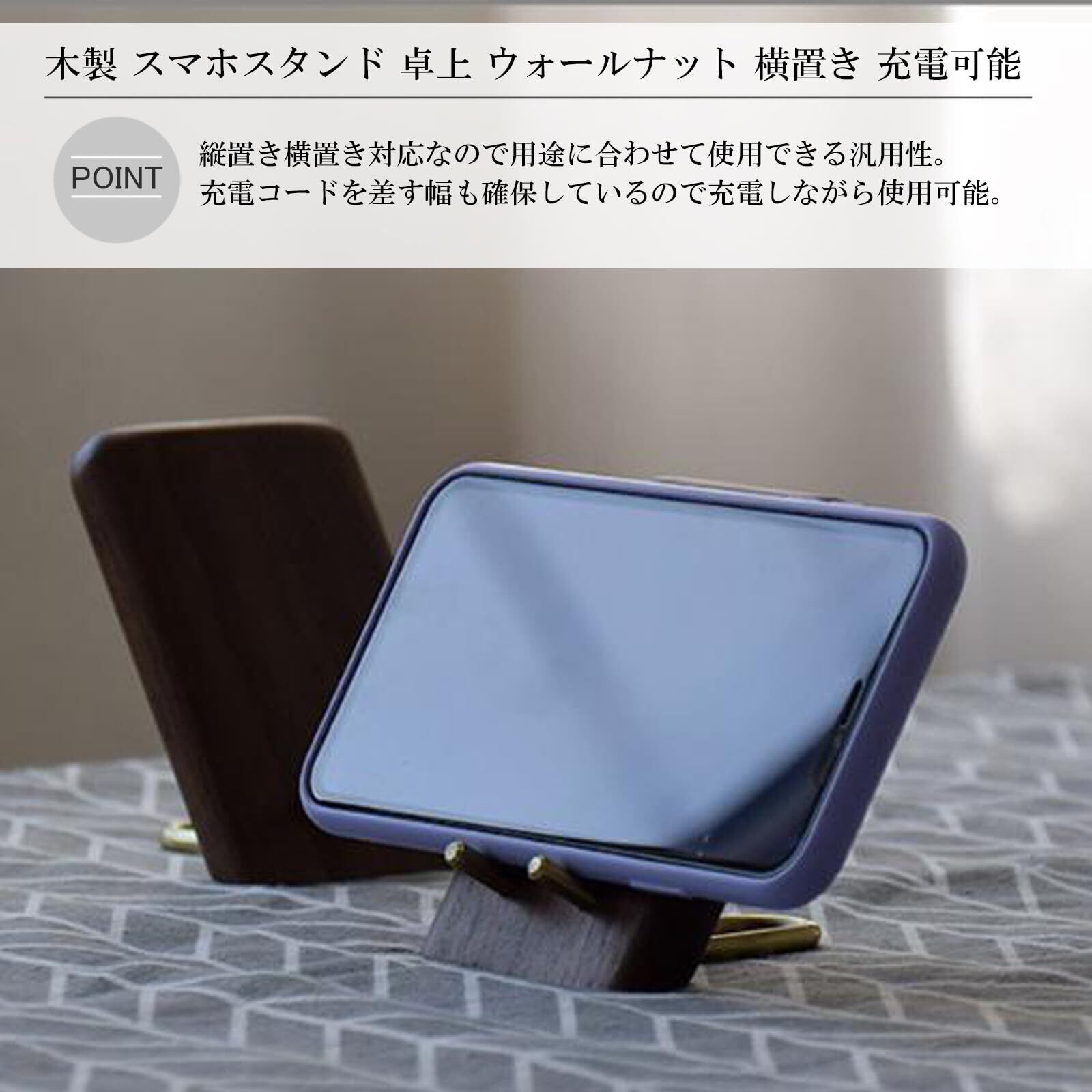 Silver & Style 木製 スマホスタンド 卓上 ウォールナット インテリア おしゃれ 縦置き 横置き 充電対応 (ブラウン)