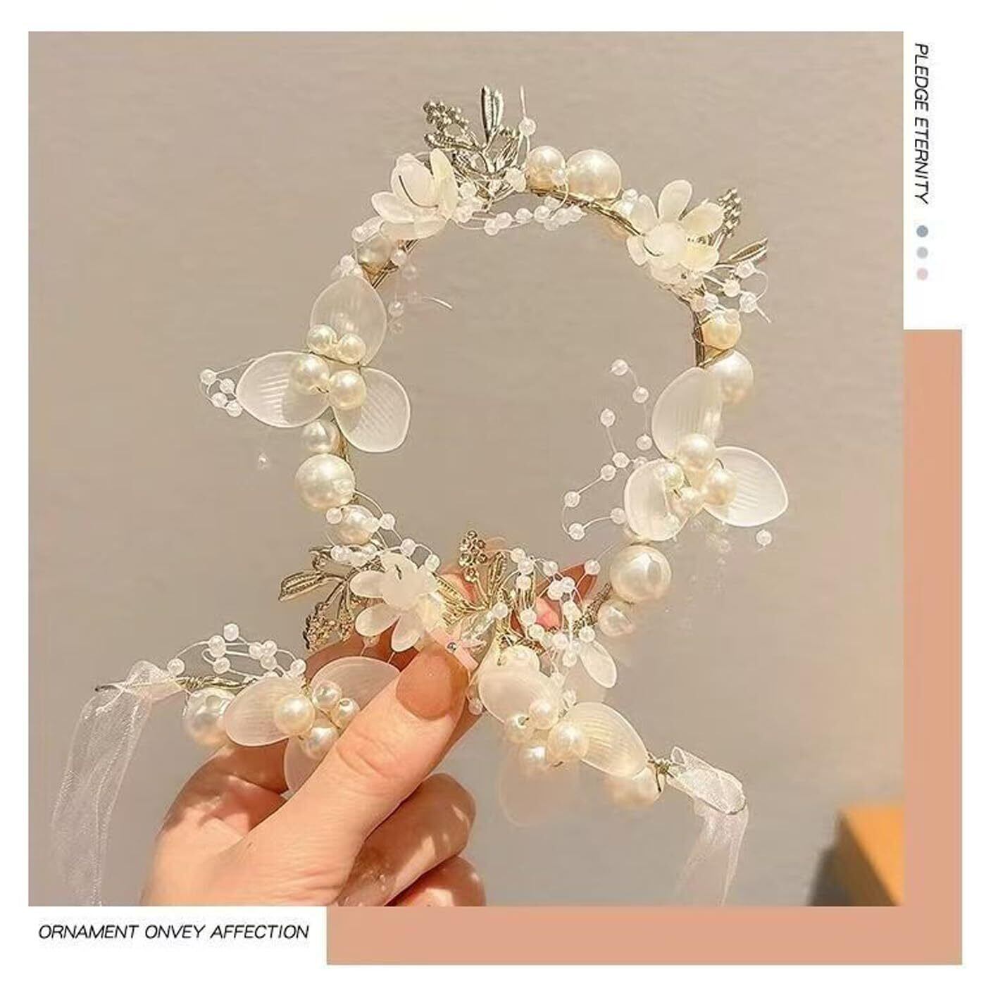 サテンリボン、模造パール、合金を用いて丁寧に手作りされており、優れた品質で長持ちし、繊細で魅力的な優雅さを演出します。
