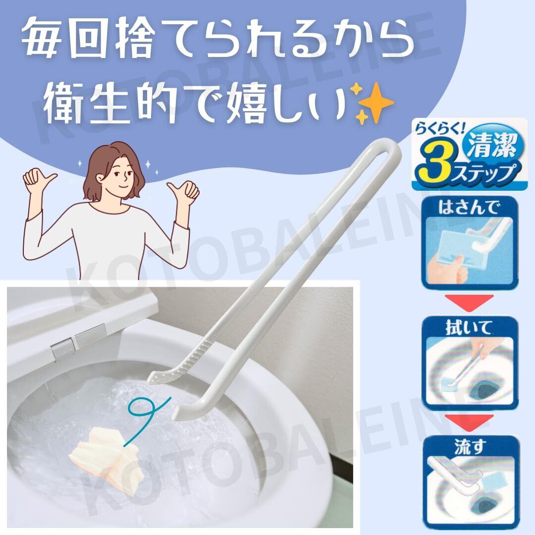 【人気商品】トイレクリーナー 使い捨てシートでお掃除 ケース付き (ホワイト) トイレブラシ フチ裏に届く お手入れ簡単 水切れ 全長25cm