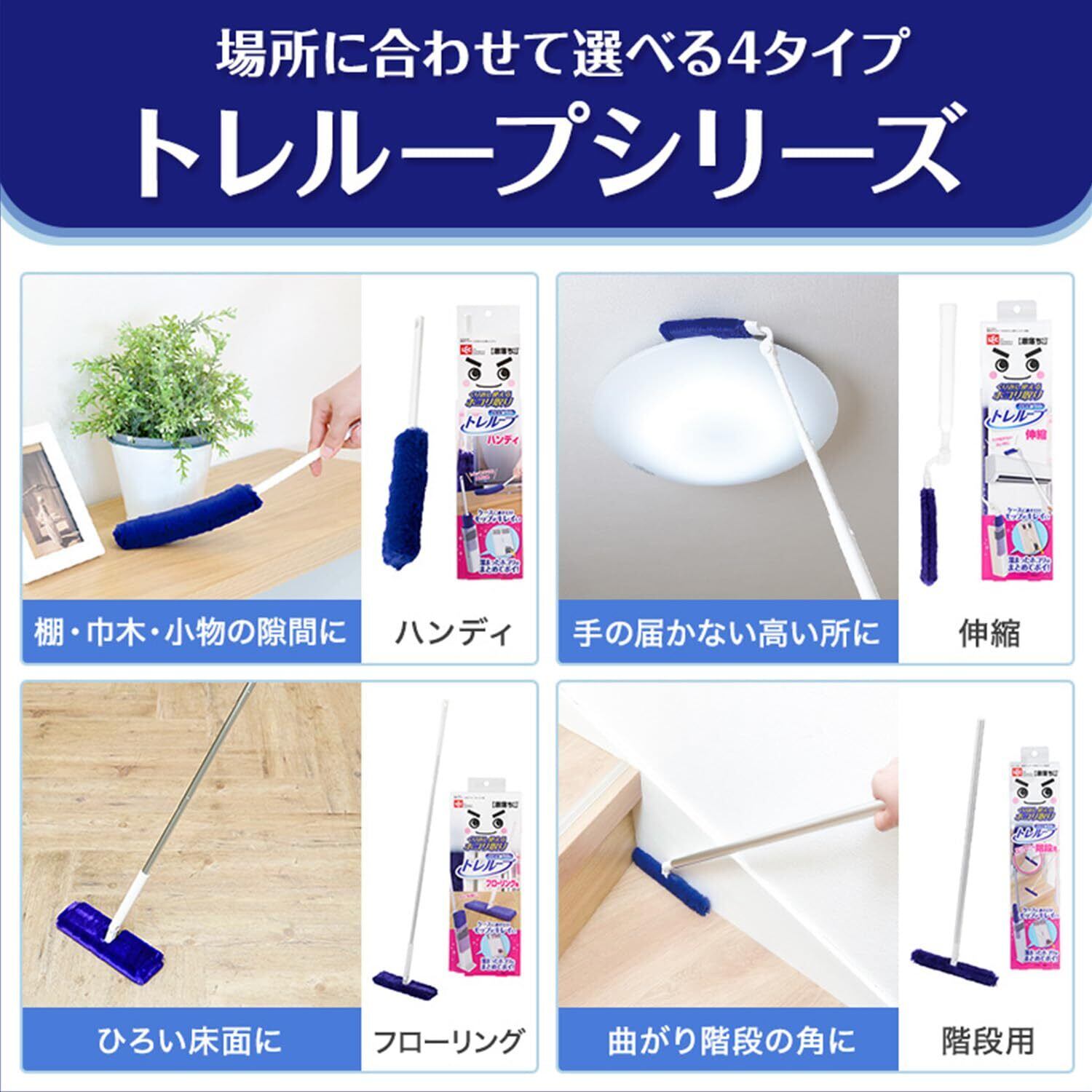自立収納できるケース付きなので、階段の近くなど手に取りやすい場所に置きやすくいつでもサッとお掃除できます。