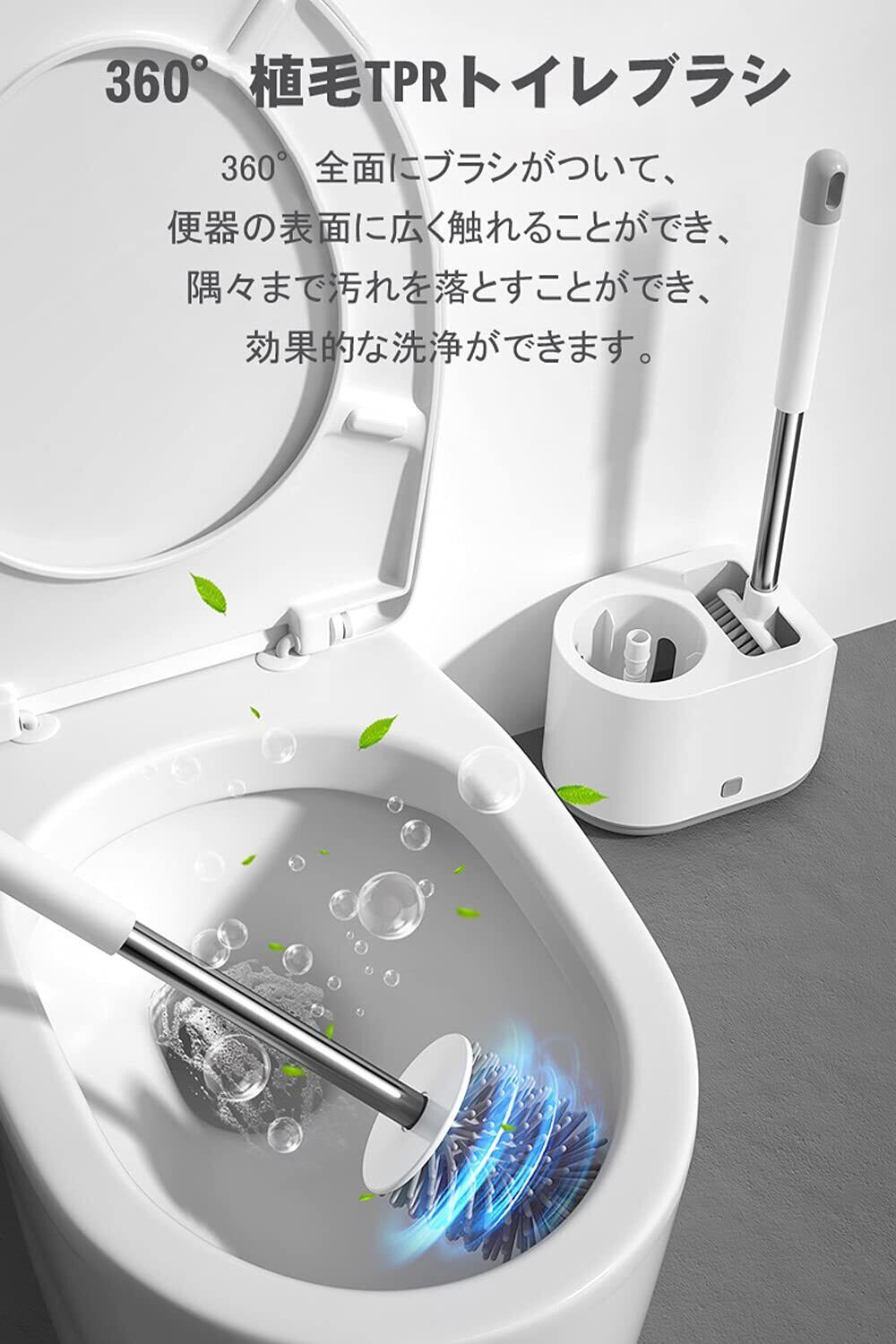 【新着商品】トイレブラシ 2個セット トイレ掃除 防滴掃除ブラシ ホルダー付き 360°タイプ 抗菌TPRブラシヘッド 水はね防止 傷つけない トイレ掃除用品 便器掃除 速乾通気 省スペース 床置き