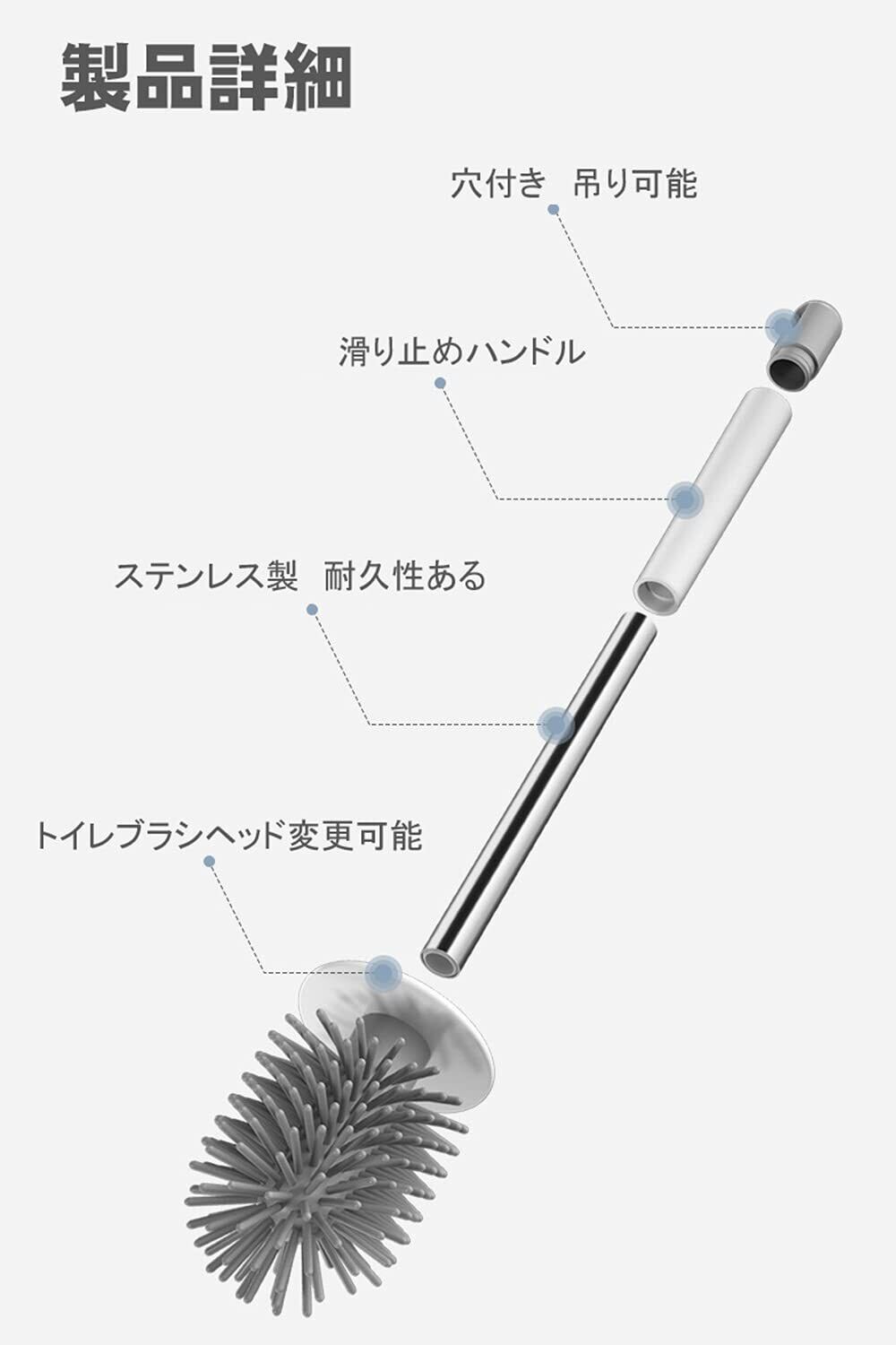 【2個セット】:丸タイプブラシとT形斜めタイプブラシの2点がありますので、掃除の場所によってご使用ください。ハンドル材質:ステンレスとABS樹脂。ブラシヘッド材質:TPR。セット重量:570g。カラー:ホワイトとグレー。置き方:床置きだけ。