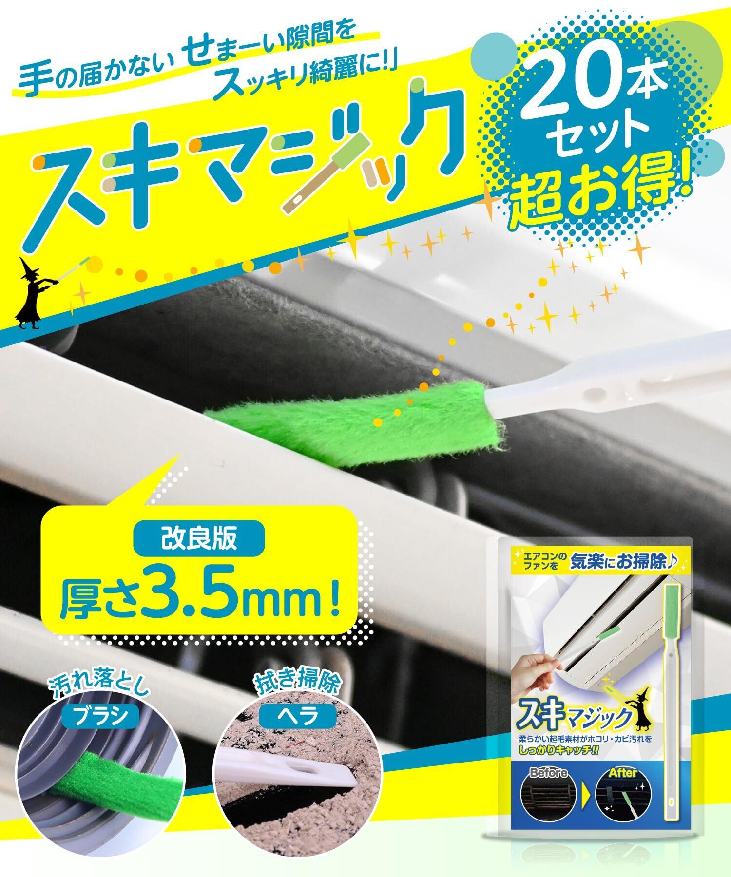 【特価商品】エアコン掃除ブラシ 隙間ブラシ 隙間掃除 ヘラ付 エアコンブラシ 掃除道具 隙間掃除グッズ (長さ17.5cm×20本)
