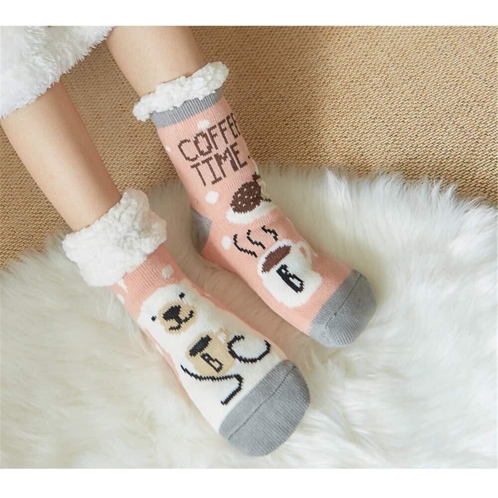 【特価セール】Moecat 床ソックス レディース ロング 靴下 厚い 保温 ルームソックス 裏起毛 ゆかいた 滑り止め かわいい 動物柄