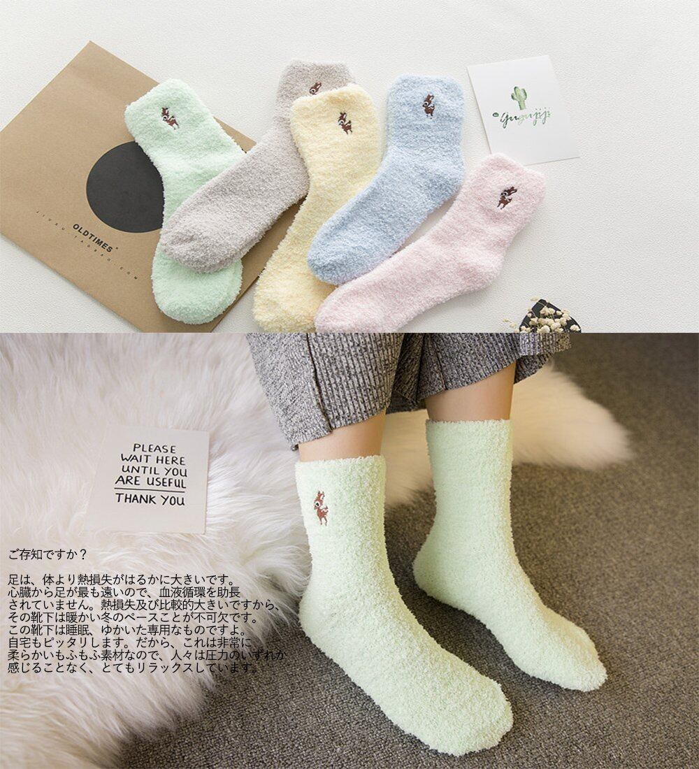 【2022最新】[KOUTEI] 靴下 レディース もこもこ くつしたソックス 多足セット ミドル コーラルフリース生地 ガールズ 速乾 通気 厚手 ゆかいた専用 自宅 睡眠 秋冬 就寝ソックス 違う色セット