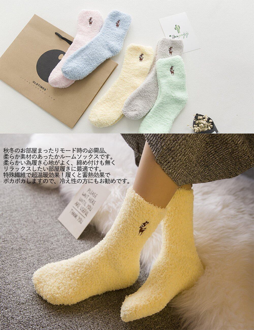 [KOUTEI] 靴下 レディース もこもこ くつしたソックス 多足セット ミドル コーラルフリース生地 ガールズ 速乾 通気 厚手 ゆかいた専用 自宅 睡眠 秋冬 就寝ソックス 違う色セット