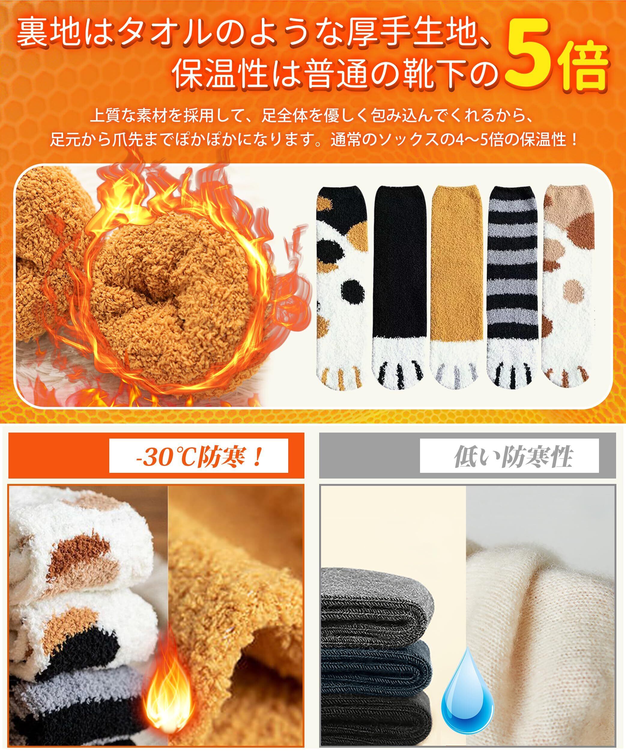 [SIVAN] 【二年かかった改良・毛が抜けない】 靴下 レディース ソックス 冬 厚手 【零下防寒・極暖38℃恒温・伸縮性・通気性】 就寝ソックス ルームソックス 保温防寒 消臭 可愛い おしゃれ 耐久性 伸縮性 室内 5足セット 22-25cm