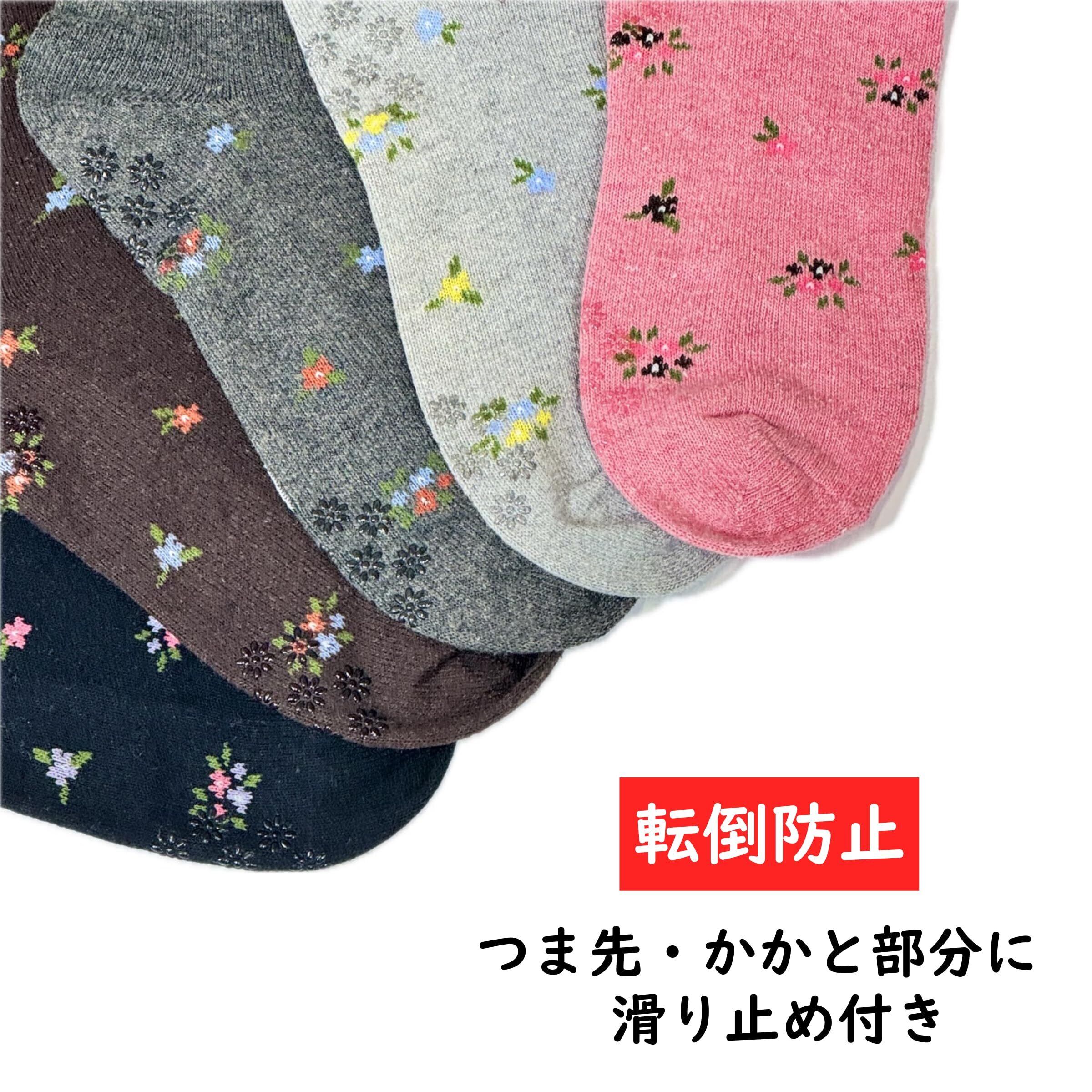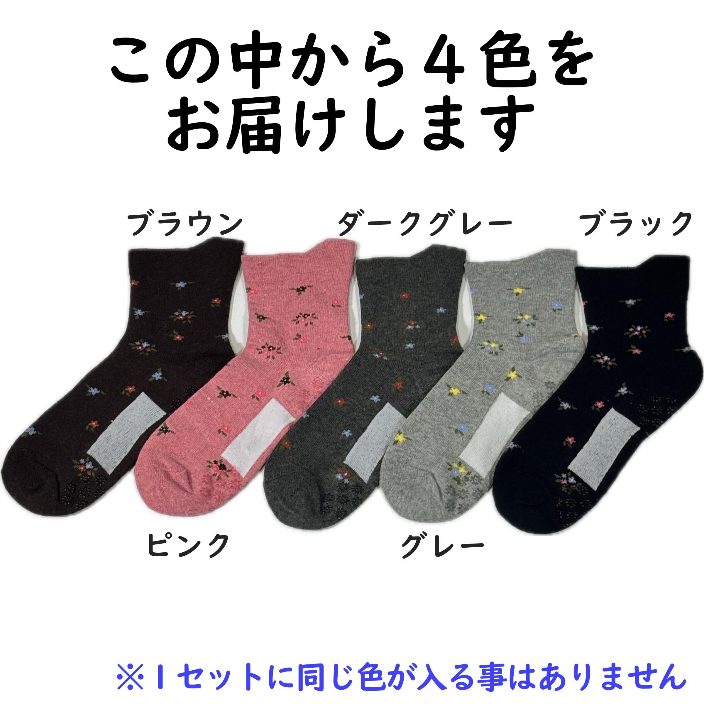 [trust map] [4足セット] ソックス レディース 秋冬用 毛混 暖かい 片手で履ける 転倒防止 滑り止め付き 名前が書ける 花柄 ベロ付き 締め付けない ゴム無し [シニア 介護 施設 入院 入所 靴下] (色おまかせ)